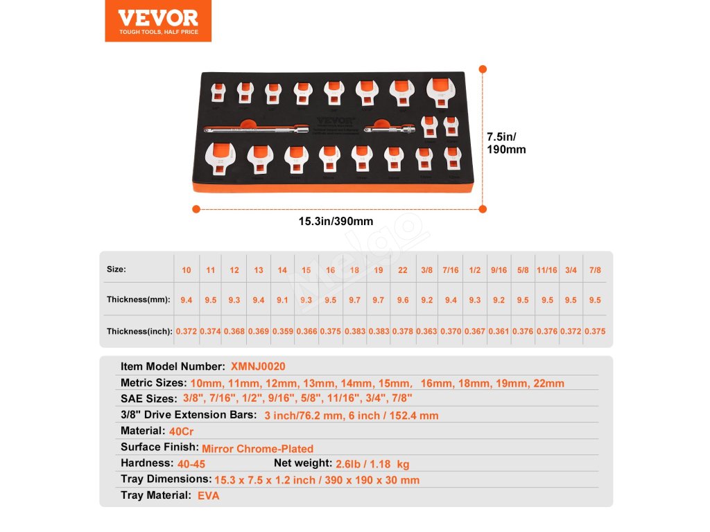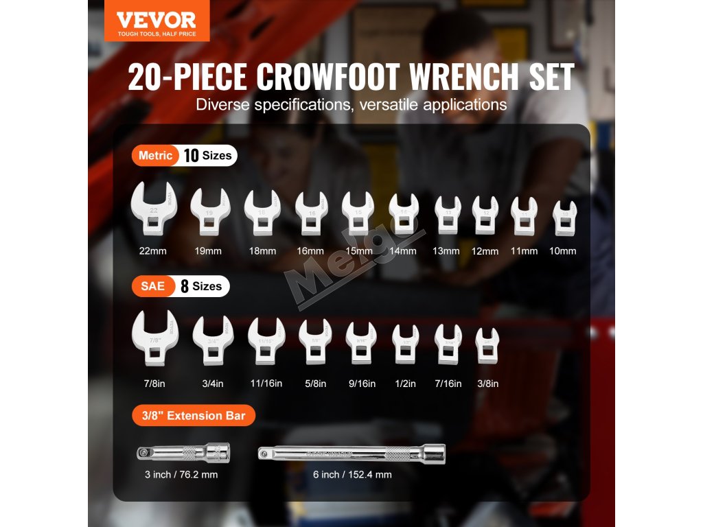 Sada očkových kľúčov 3/8" 20-dielna, sae 3/8"-7/8" a 10-22 mm
