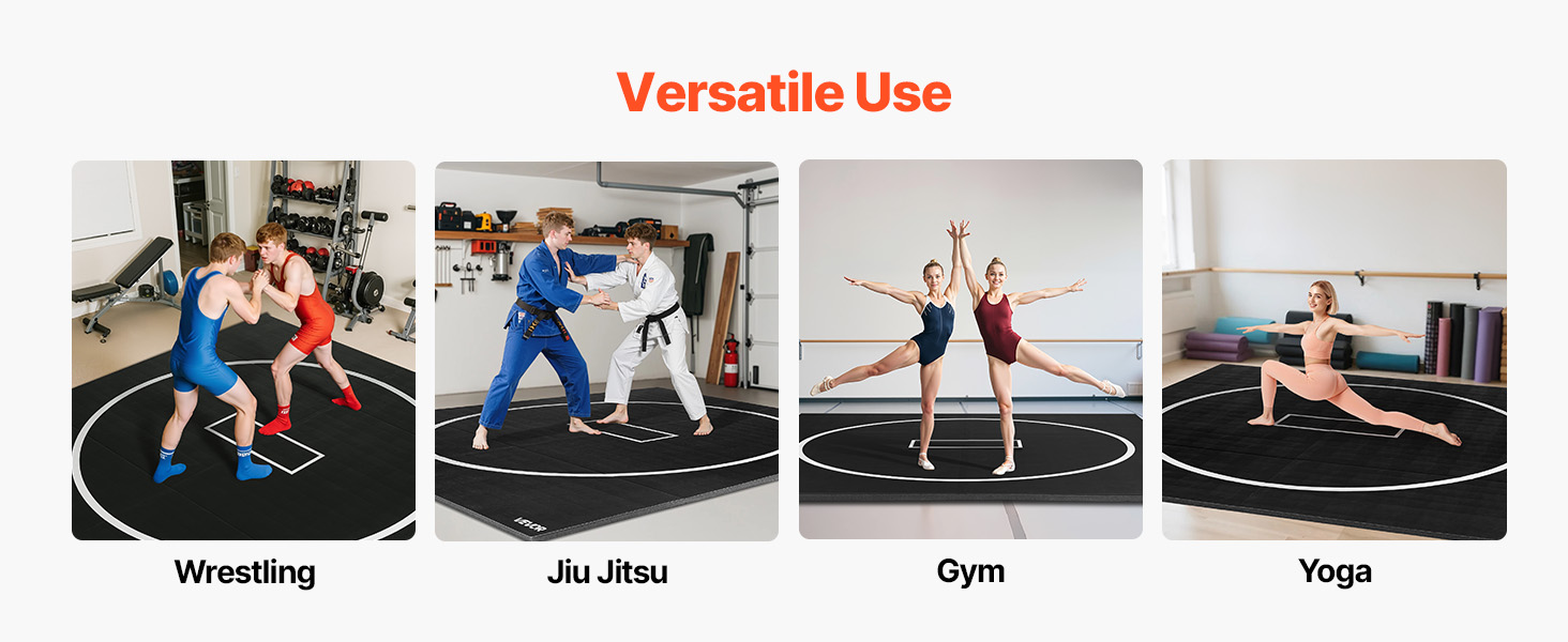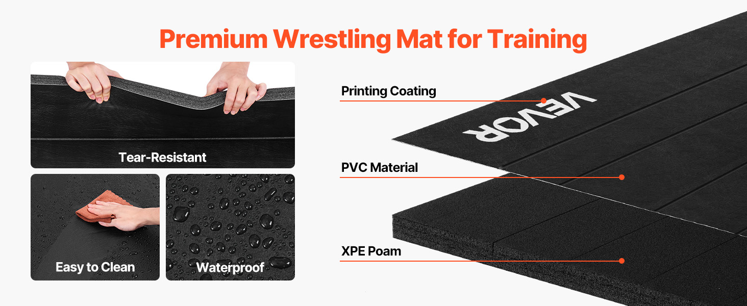 Táto prémiová tréningová podložka do domácej posilňovne je vyrobená z peny XPE a materiálu PVC. Je navrhnutá na jednoduché čistenie a dlhotrvajúcu odolnosť a poskytuje spoľahlivý povrch na zápasenie a iné športové tréningy.