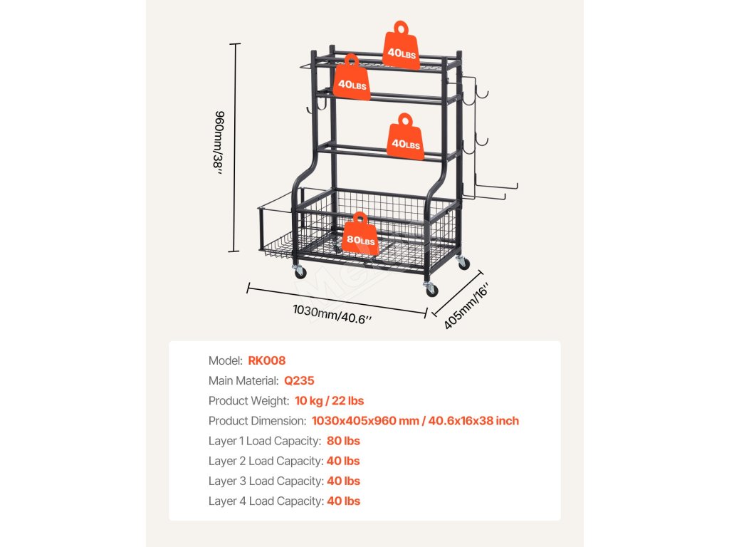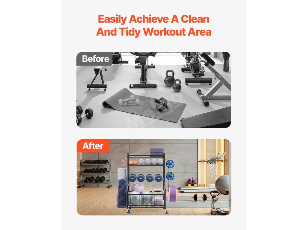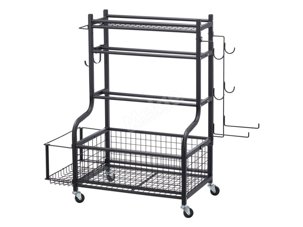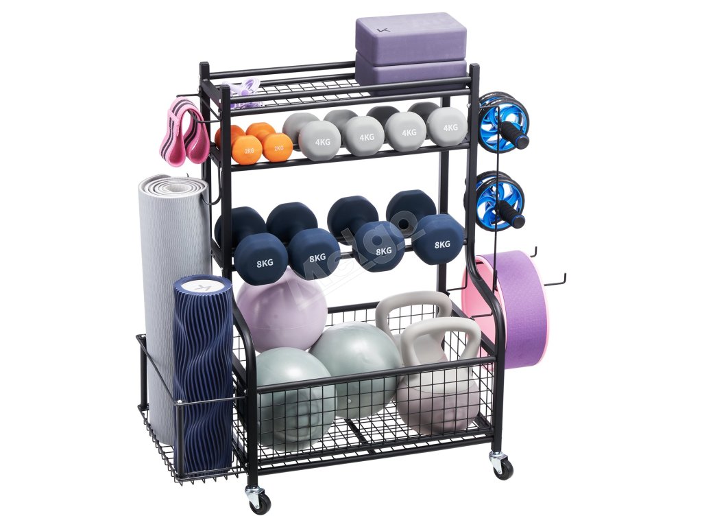 Tento univerzálny úložný stojan na cvičenie je ideálny na organizovanie predmetov v telocvičniach, školách a na všetkých športoviskách, kde ľahko udrží poriadok a čistotu v priestore.