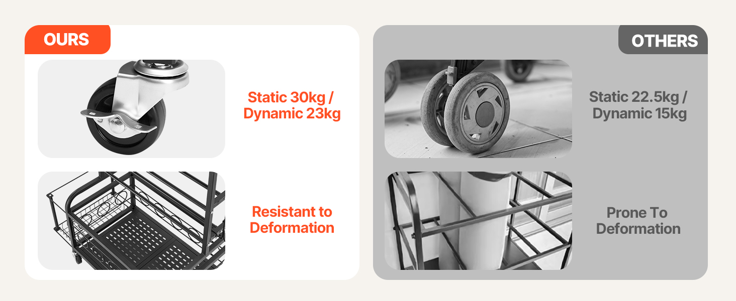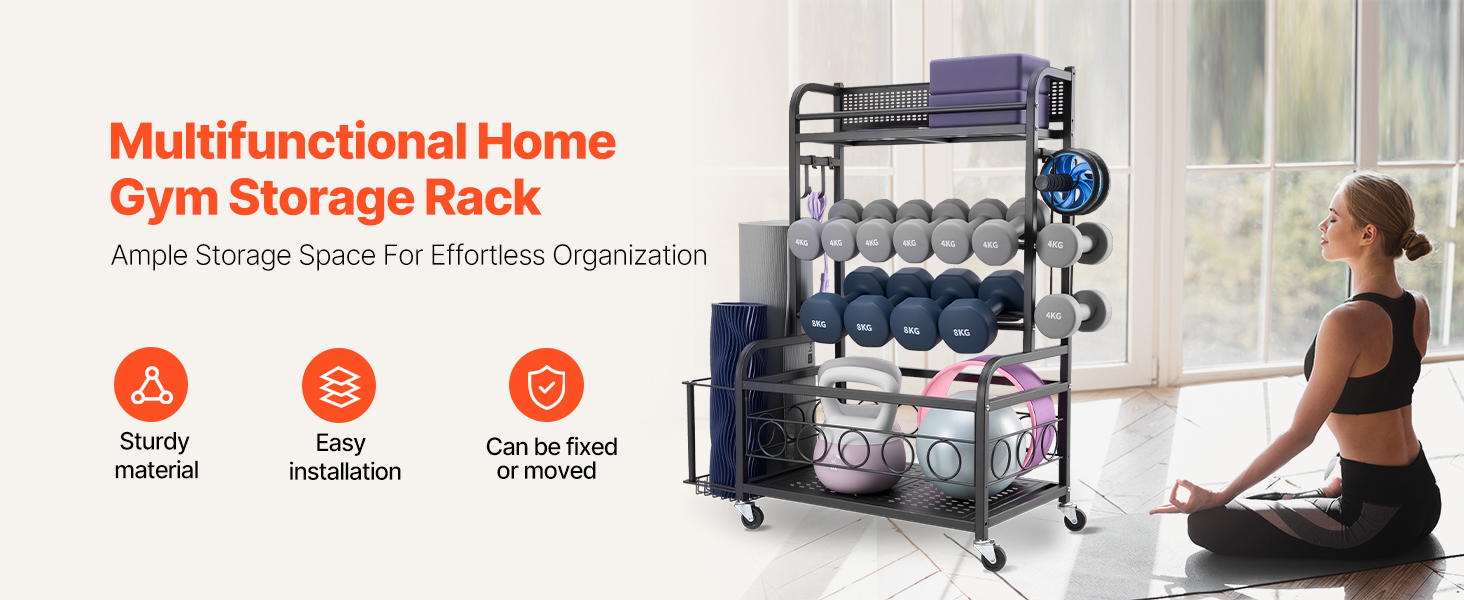 Vďaka rôznym úložným priestorom a metódam tento držiak na podložky na jogu maximalizuje úložnú kapacitu vášho tréningového vybavenia a uľahčuje prístup k položkám v spodnej časti. Je vybavený štyrmi robustnými 360-stupňovými kolieskami (dve sú uzamykateľné), čím spĺňa vaše požiadavky na mobilitu a stabilitu.
