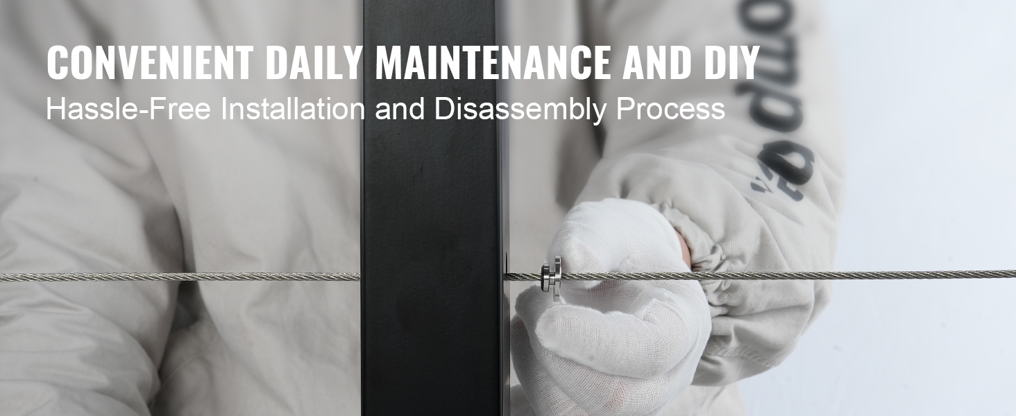 Túto súpravu zábradlia možno použiť nielen na upevnenie oceľových laniek a zníženie opotrebovania zábradlia, ale aj na zakrytie nevzhľadných dier, čím sa zlepší celková vizuálna estetika a omladí sa scenéria pred vašimi očami.