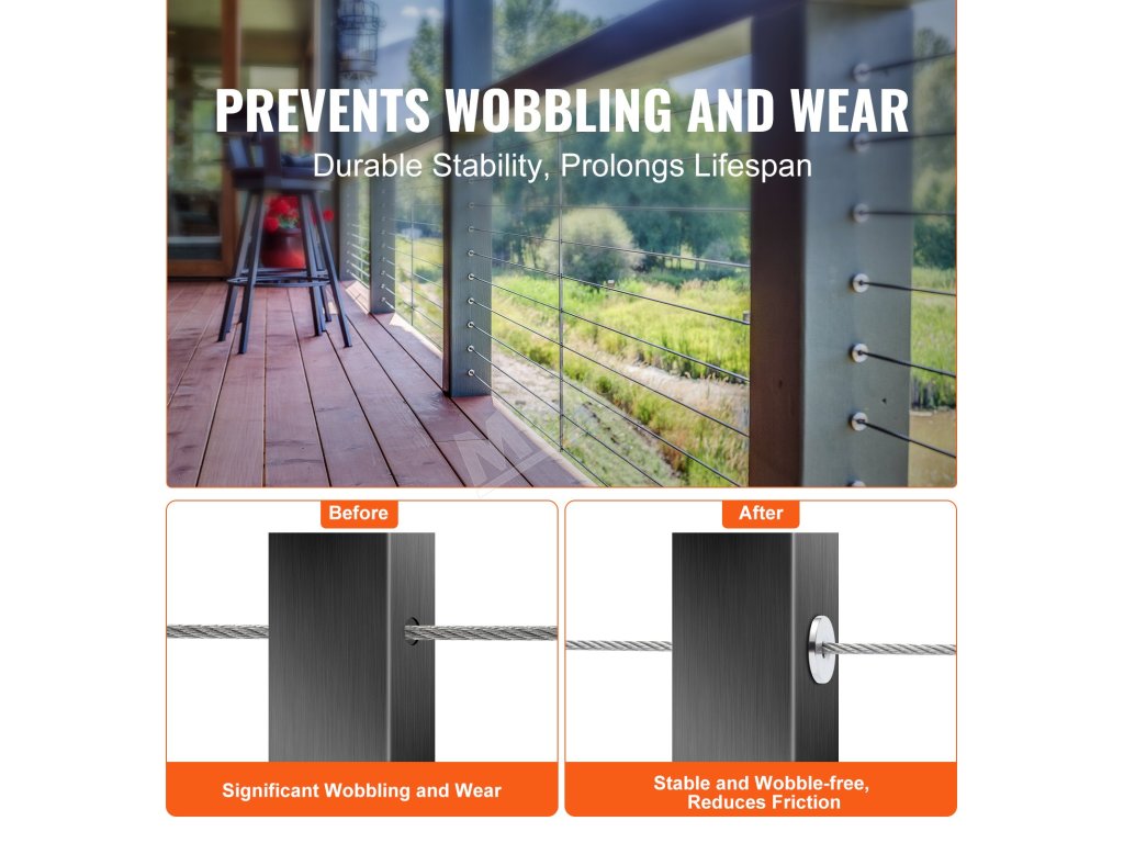 Túto súpravu zábradlia možno použiť nielen na upevnenie oceľových laniek a zníženie opotrebovania zábradlia, ale aj na zakrytie nevzhľadných dier, čím sa zlepší celková vizuálna estetika a omladí sa scenéria pred vašimi očami.