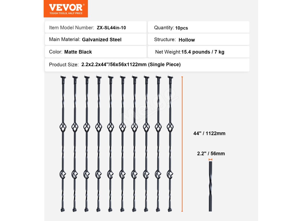 Balustre na schodisko 44"×1/2" galvanizovaná oceľ, 10 ks, dvojité košíky