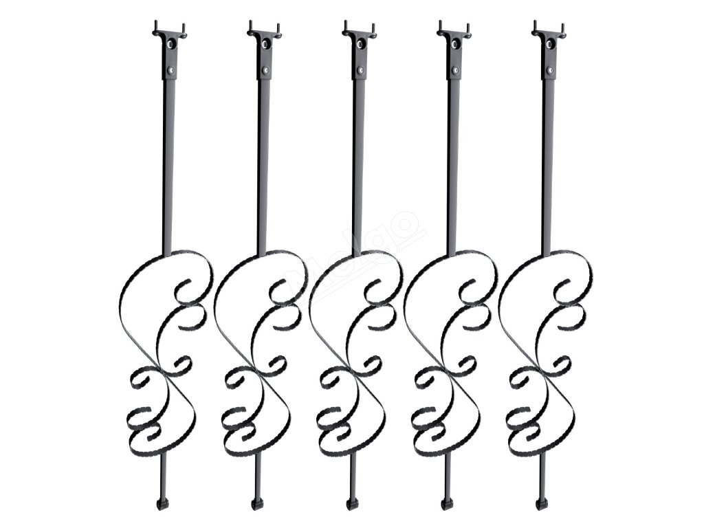 Schodiskové balustre esové 44"×1/2" galvanizovaná oceľ 5 ks čierne