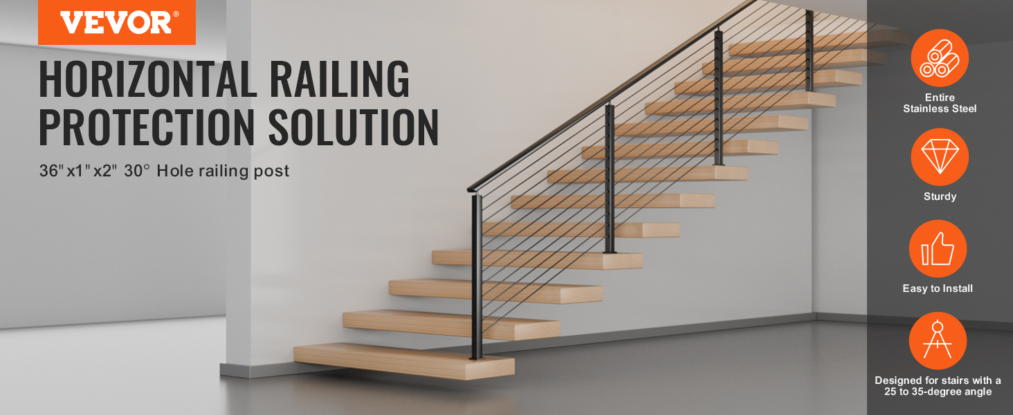 Náš 36-palcový stĺpik zábradlia s 30° uhlovým otvorom má oválne otvory 0,31"-0,51" s rozstupom 3,14" medzi jednotlivými otvormi, ktoré prešli 4-palcovým guľovým testom. Ideálne na ochranu vašej rodiny na schodoch s uhlom 25° až 35°, čím sa zabezpečí ich bezpečnosť.