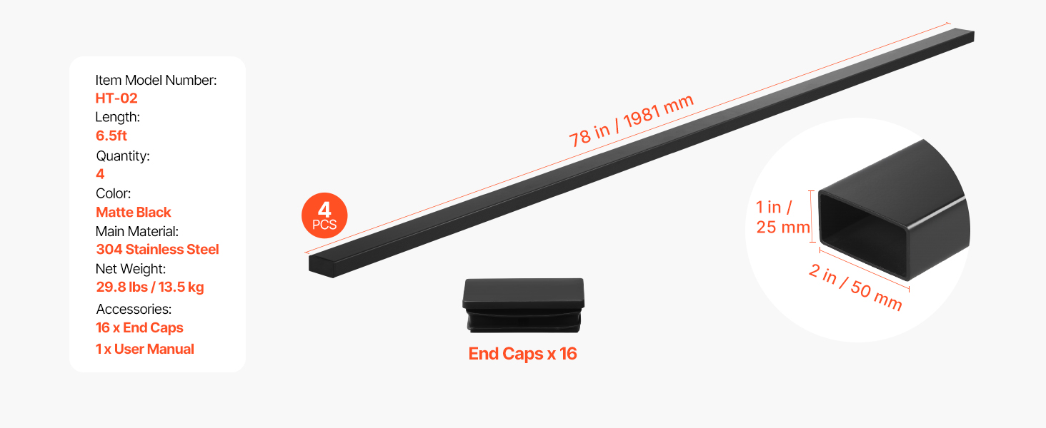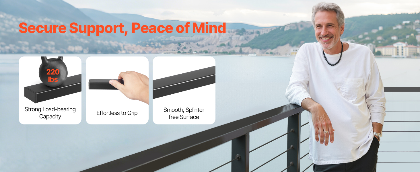 Toto zábradlie je vyrobené z nehrdzavejúcej ocele 304 s povrchovou úpravou odolnou proti korózii a ľahko sa inštaluje. Jeho ergonomická rukoväť, hladké hrany a koncové krytky odolné proti poškriabaniu zaisťujú pohodlie a bezpečnosť a sú vhodné na použitie v interiéri aj exteriéri.