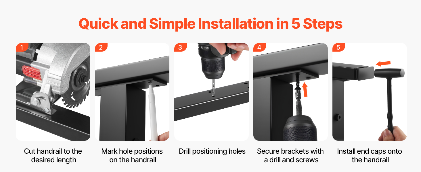 Inštalácia tohto zábradlia je jednoduchá: na rýchle nastavenie stačí použiť vŕtačku a vrták. Nie sú potrebné žiadne špecializované nástroje ani zručnosti, vďaka čomu je vhodné pre začiatočníkov, ktorí ho nainštalujú za krátky čas.