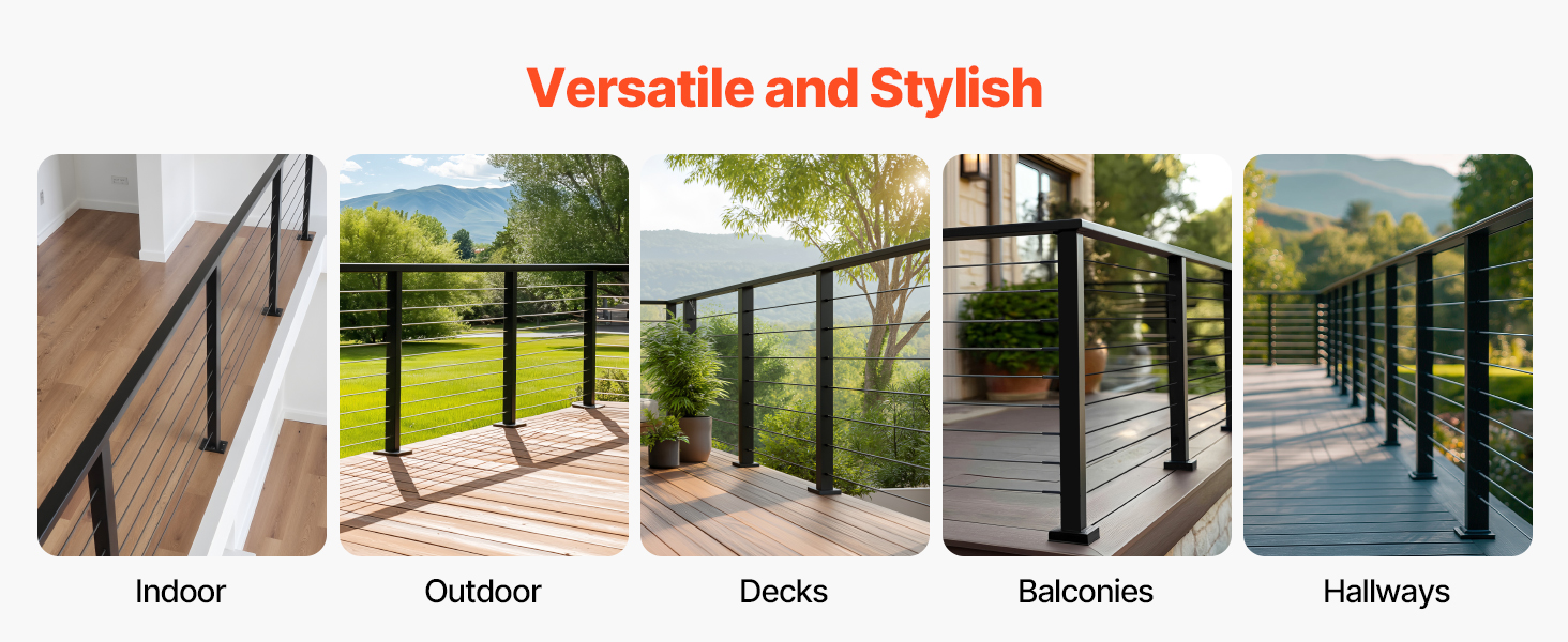 Vhodné pre vnútorné alebo vonkajšie priestory, ako sú paluby, balkóny alebo schody, a poskytuje spoľahlivú bezpečnosť pre váš dom alebo firmu.