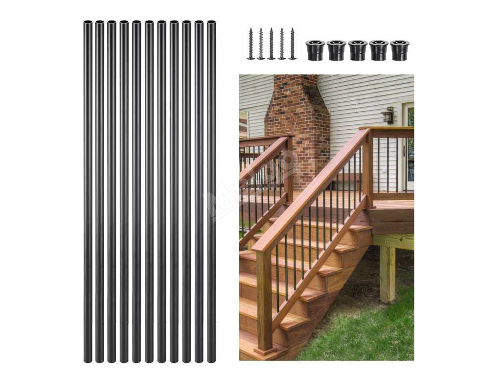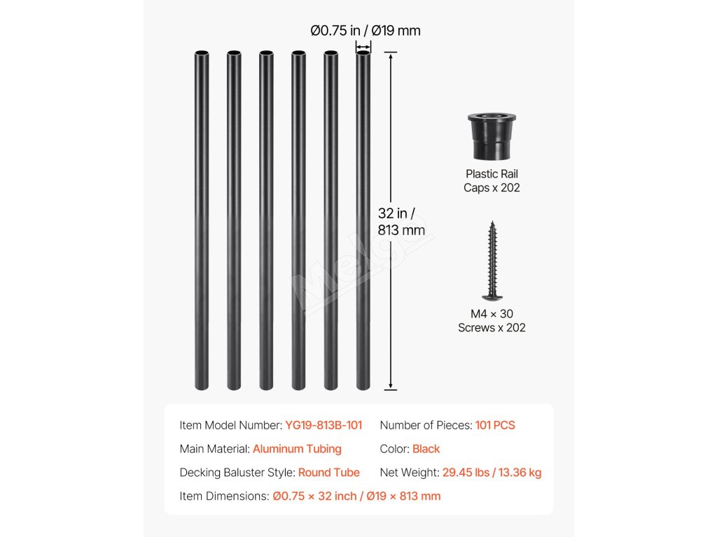 Hliníkové balustre 101 ks, 32 in, 3/4 in, duté, čierne, s krytkami