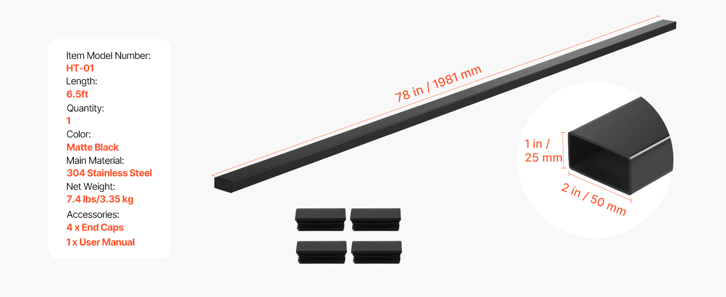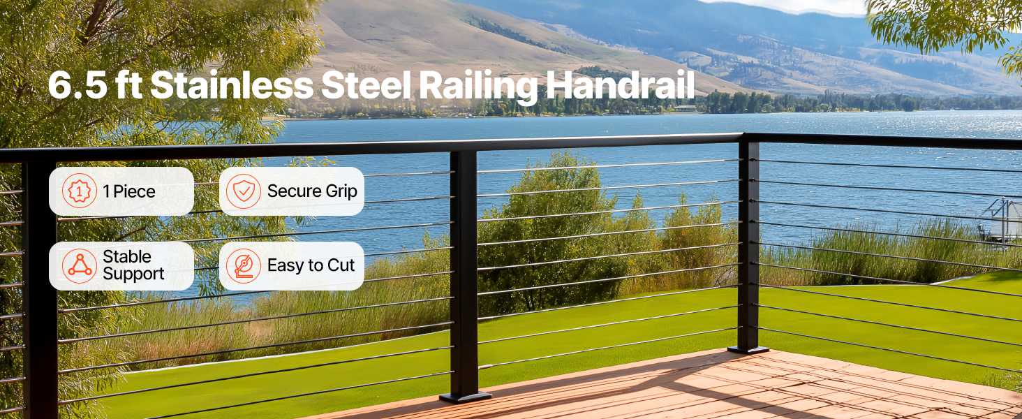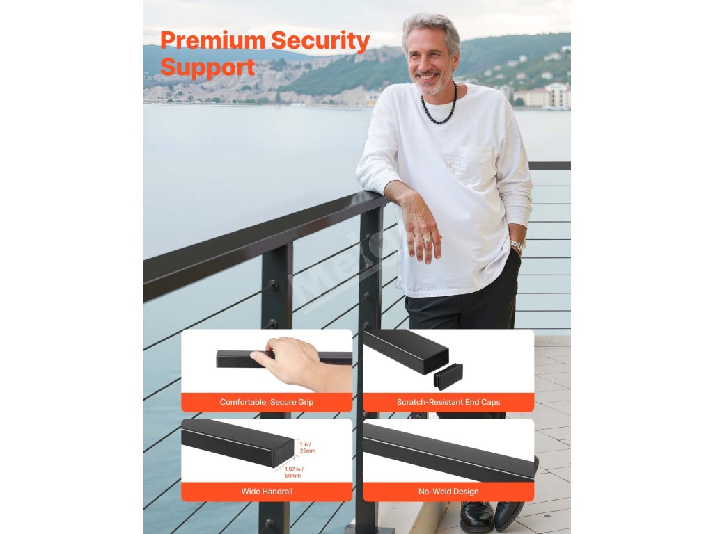 Toto zábradlie je vyrobené z nehrdzavejúcej ocele 304 s povrchovou úpravou odolnou proti korózii a ľahko sa inštaluje. Jeho ergonomická rukoväť, hladké hrany a koncové krytky odolné proti poškriabaniu zaisťujú pohodlie a bezpečnosť a sú vhodné na použitie v interiéri aj exteriéri.