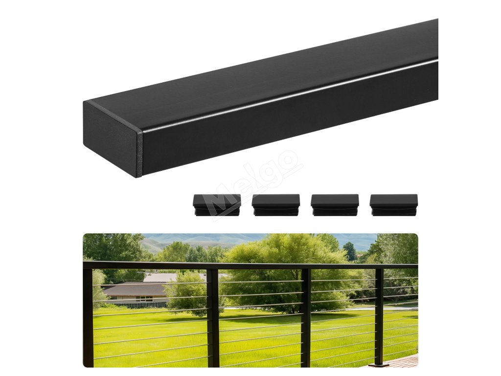 Nerezové zábradlie 198 cm, obdĺžnikový profil, čierne, s koncovkami