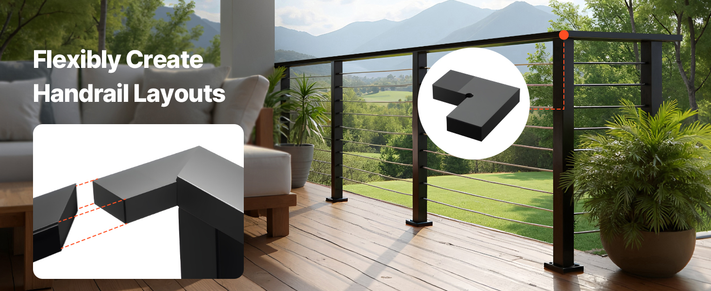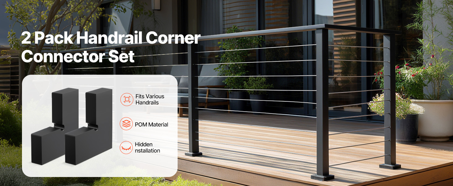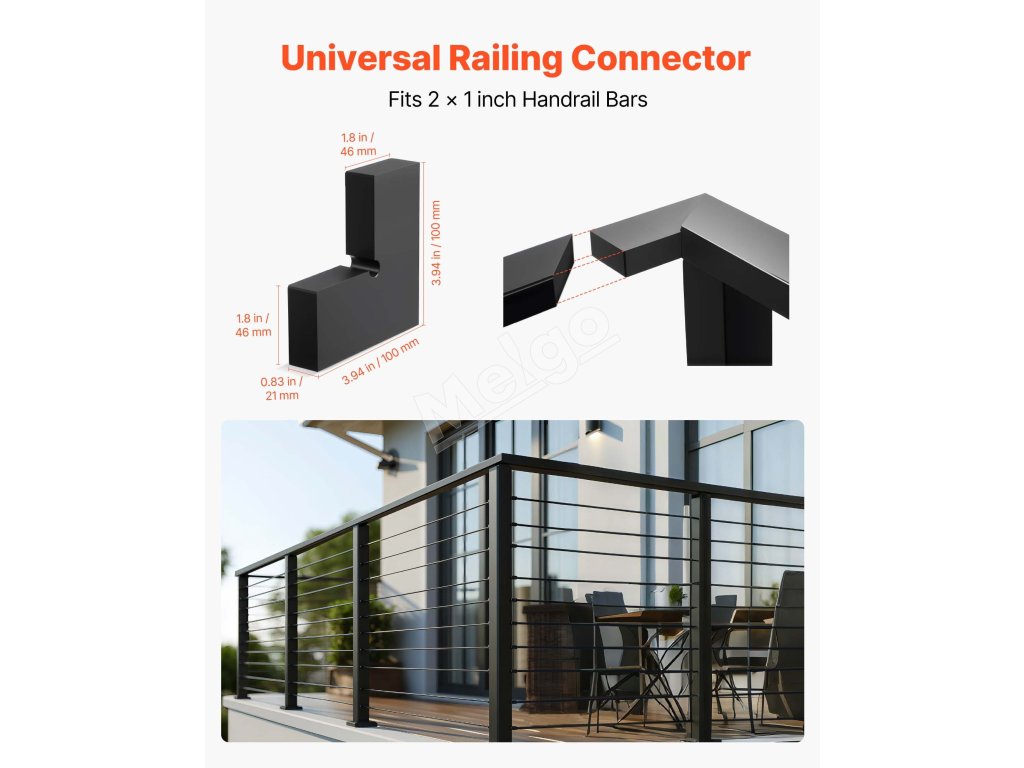 Tento univerzálny konektor je vhodný pre zábradlie s rozmermi 2 x 1 palec. Je vyrobený z vysokokvalitného POM, odolný proti poškriabaniu a nárazom. Skrytá inštalácia zvyšuje stabilitu a estetiku, je ideálna na vnútorné aj vonkajšie použitie na vytvorenie štýlového zábradlia.