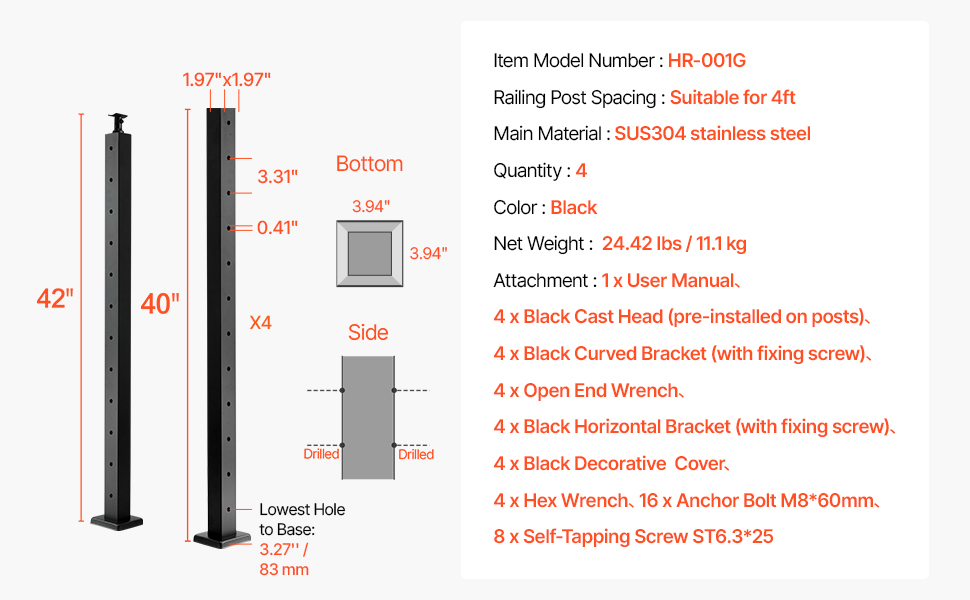 Toto schodiskové zábradlie sa dodáva s predvŕtanými otvormi, vďaka čomu nie je potrebné ďalšie vŕtanie. Umožňuje jednoduché nastavenie uhla a polohy počas inštalácie a obsahuje všetko potrebné príslušenstvo, čo šetrí prácu.