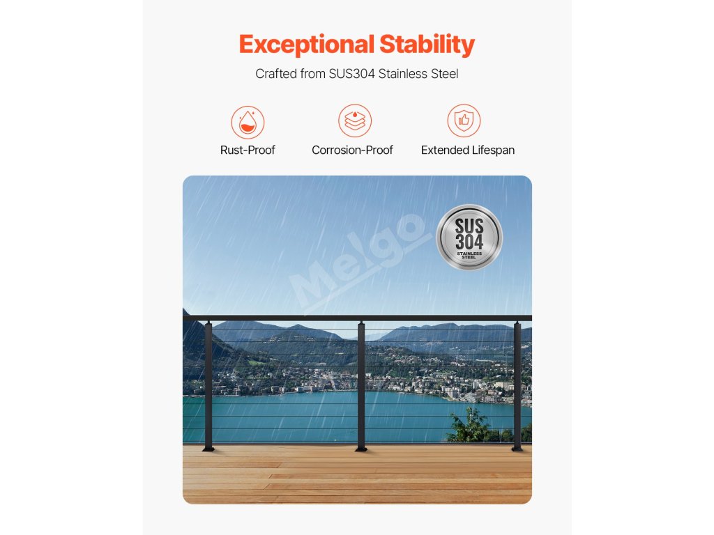 Objavte nový štandard stĺpikov zábradlia! Náš stĺpik zábradlia s káblami je vyrobený z odolnej nehrdzavejúcej ocele SUS304 a ponúka pevnosť aj štýl. Jednoducho sa inštaluje vďaka predvŕtaným otvorom a priloženému príslušenstvu a je ideálny na zabezpečenie paluby, zábradlia a ďalších prvkov, pričom spĺňa všetky požiadavky predpisov.