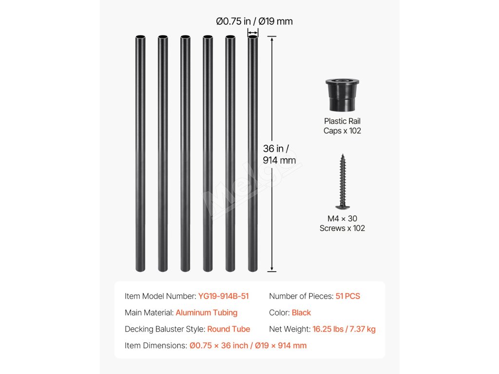 | Rozmery položky | ø0,75 x 36 palcov / Ø19 x 914 mm (každý) |