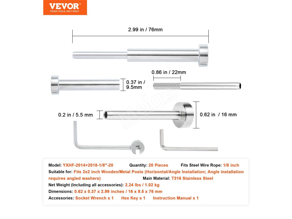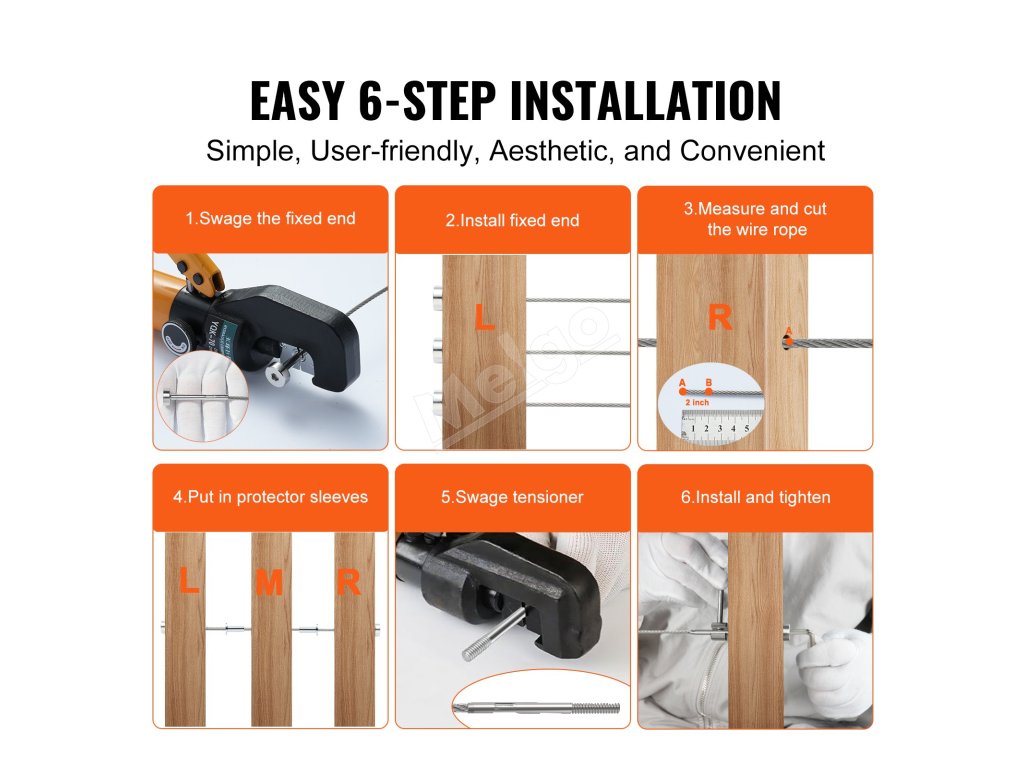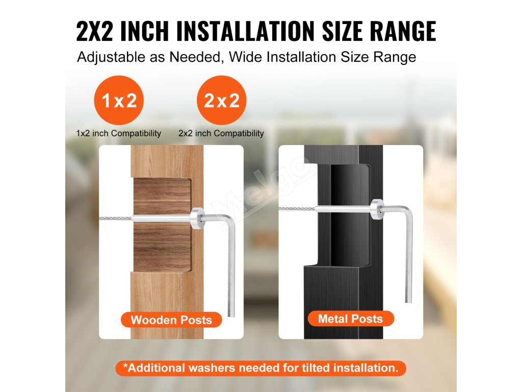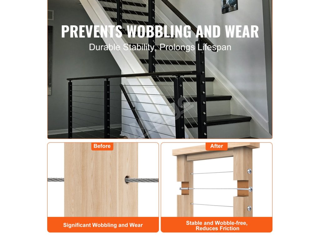 Táto súprava zábradlia je určená na inštaláciu a používanie 1/8" oceľových laniek na drevených aj kovových stĺpikoch, vďaka čomu je vhodná na rôzne aplikácie, ako sú vnútorné zábradlia, záhradné ploty a prímorské zábradlia. Ponúka veľmi pohodlné riešenie pre širokú škálu scenárov s plošinami.
