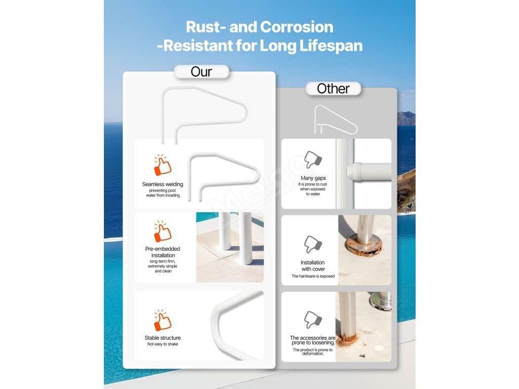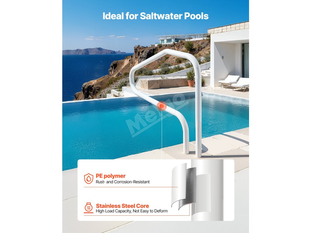 Odpoveď: Áno. Toto polymérové bazénové zábradlie je odolné voči soli a korózii na použitie pri bazénoch s chlórovanou soľou. Opláchnutie po použití pomáha ďalej znižovať riziko korózie.
