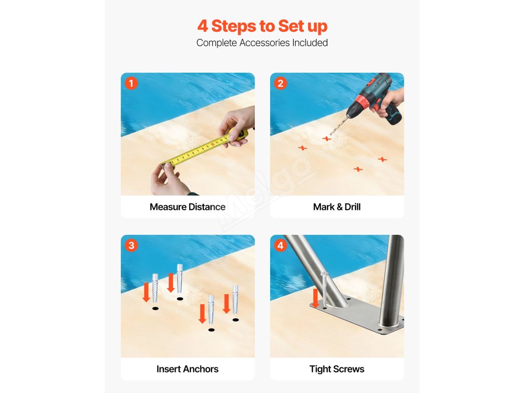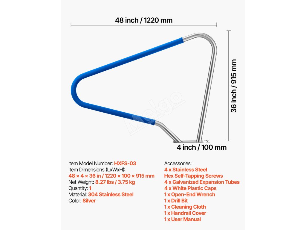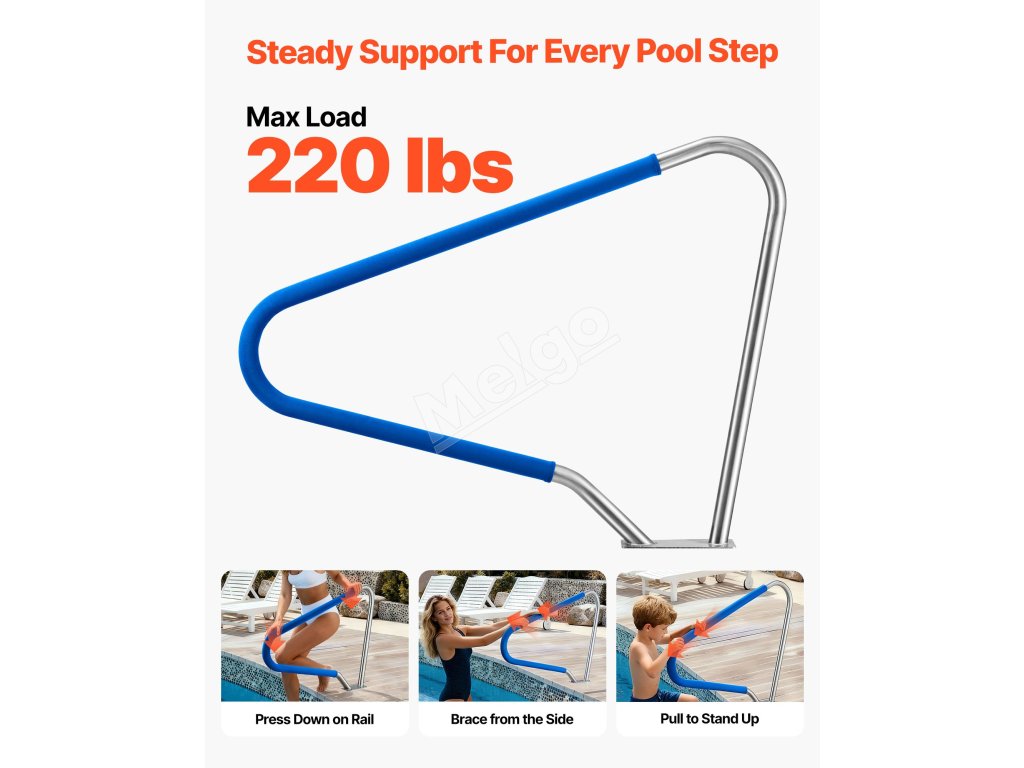 Zábradlie k bazénu 122×91,5 cm, 304 nerez, nosnosť 100 kg, s návlekom