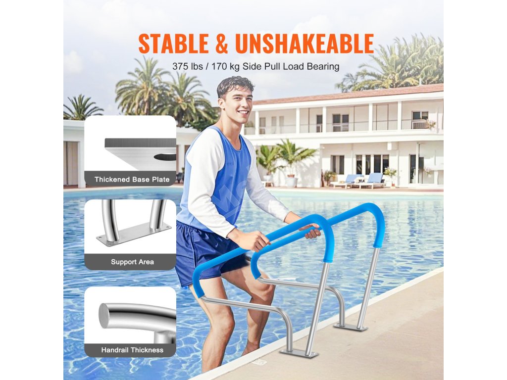 Úplne nové zábradlie z nehrdzavejúcej ocele, špeciálne navrhnuté pre bazény. Odolné voči nárazom a deformáciám, vybavené protišmykovými úchytmi zábradlia pre bezpečnú oporu. Vyberte si naše výrobky zábradlia pre trvalú bezpečnosť pri nastupovaní.