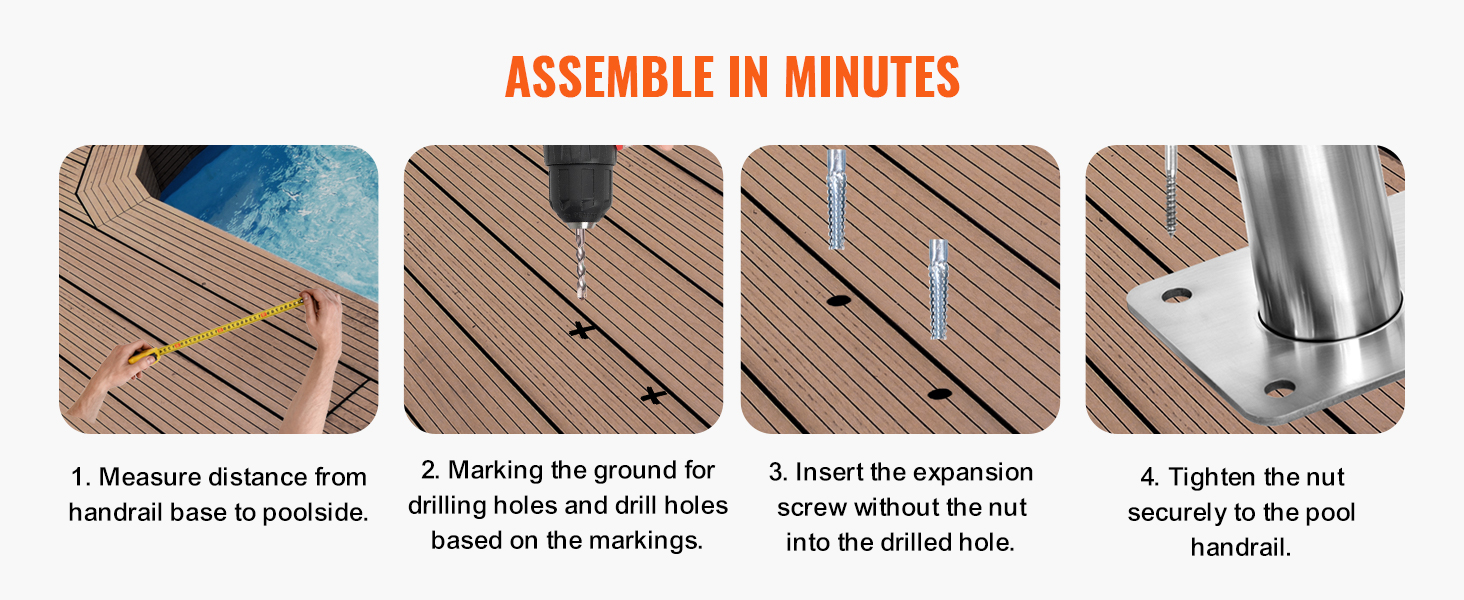 Naše bazénové zábradlia sú kompatibilné s rôznymi povrchovými materiálmi vrátane betónu, dreva a dlaždíc, čo umožňuje rýchlu inštaláciu. Na vytvorenie bezpečného a pevného vonkajšieho zábradlia nie sú potrebné žiadne zložité nástroje.