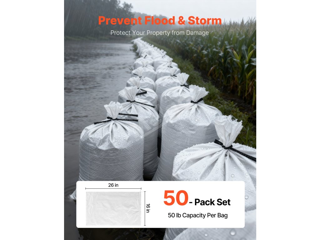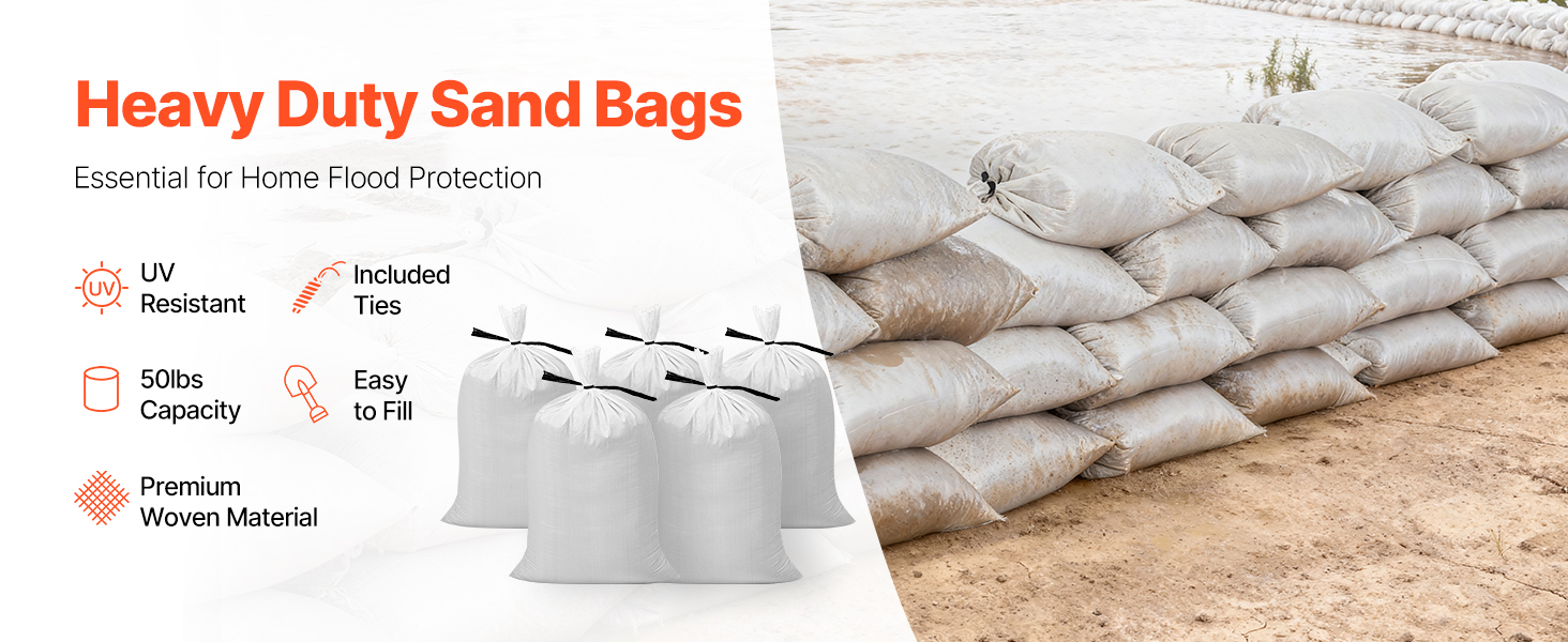 Tieto nevyhnutné vrecia na ochranu pred povodňami sú vyrobené z odolného polypropylénového materiálu, ktorý je odolný voči UV žiareniu. Široký otvor na jednoduché naplnenie pieskom alebo štrkom. Buďte pripravení na silné dažde a ľahko vytvorte silnú obrannú bariéru.