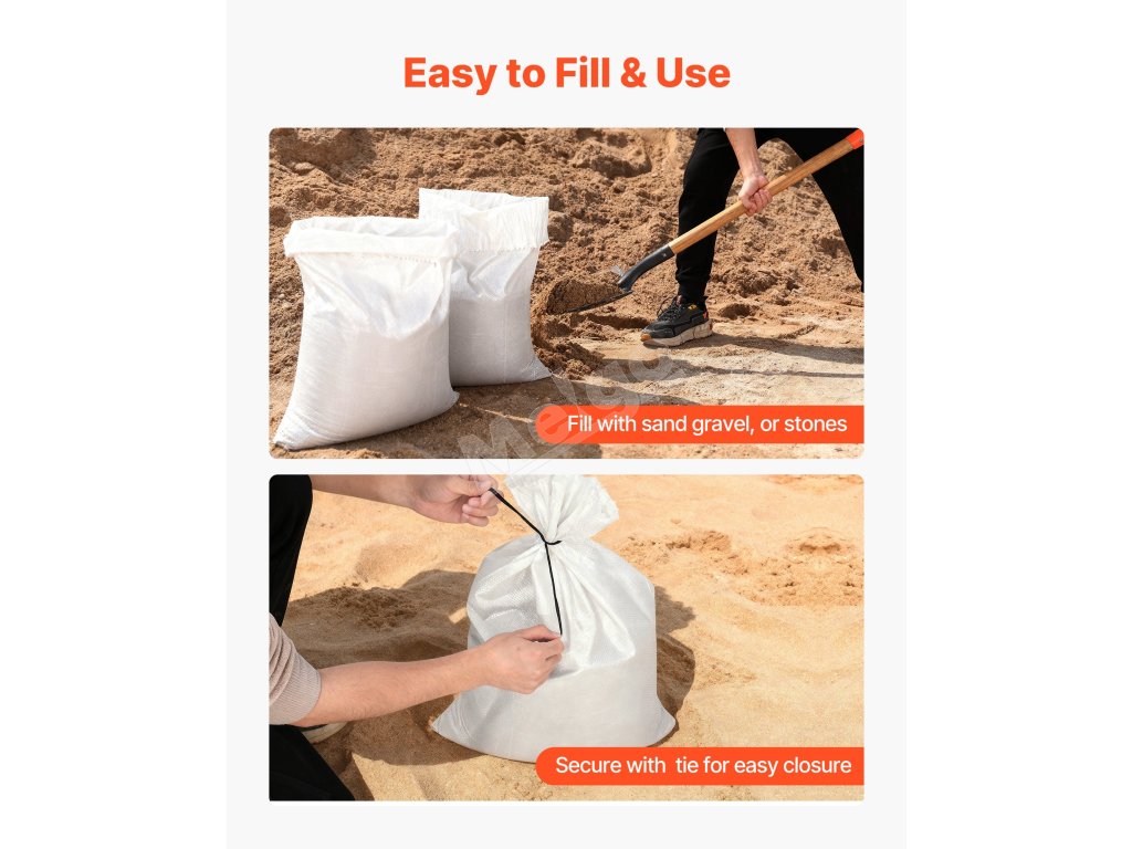 Vďaka širokému otvoru na jednoduché plnenie pieskom a zabudovanej plastovej väzbe na rýchle utesnenie sa tieto polypropylénové vrecia na piesok jednoducho plnia a zabezpečujú bez neporiadku a rozsypania.
