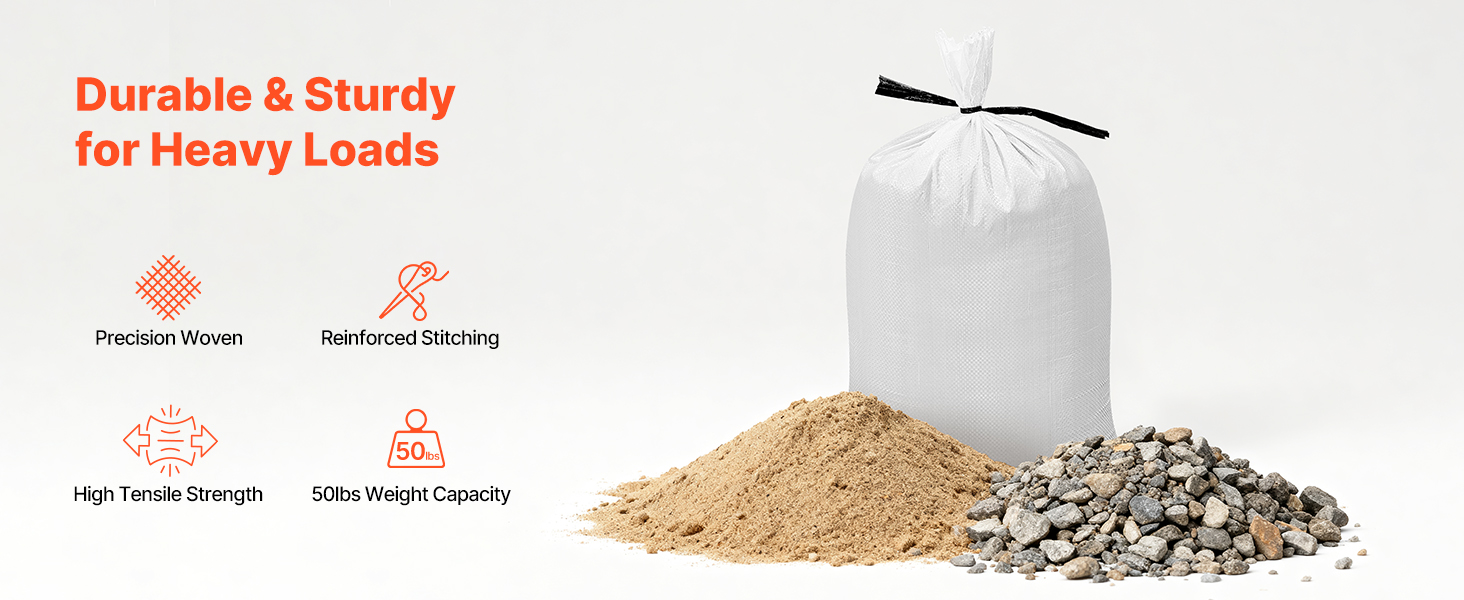 Tieto ťažké vrecia na piesok, vyrobené presným tkaním a zosilneným šitím, ponúkajú vynikajúcu odolnosť proti roztrhnutiu, pričom každé vrece dokáže udržať až 50 kg. Sú skonštruované tak, aby odolali veľkému tlaku a vydržali v náročných podmienkach.