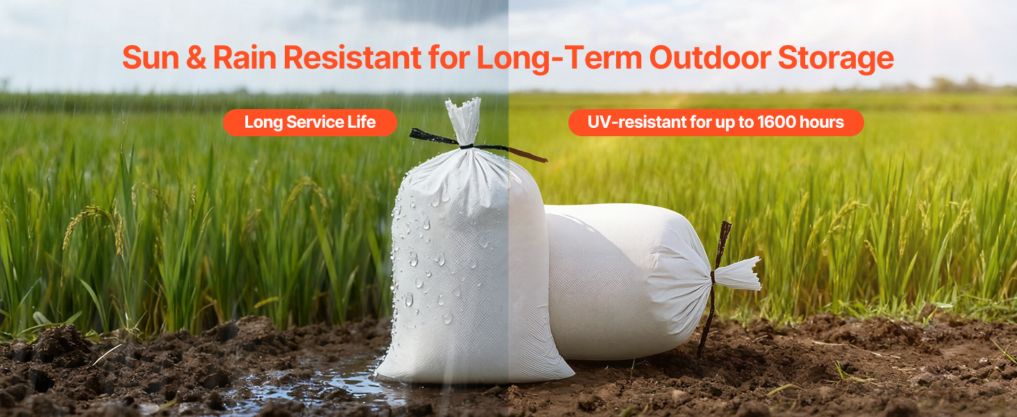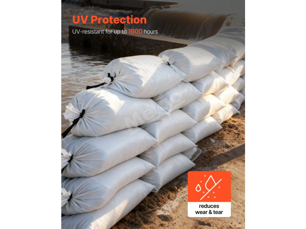 Tieto prázdne vrecia na piesok, ktoré sú určené na dlhodobé používanie v exteriéri, ponúkajú až 1600 hodín ochrany proti UV žiareniu a odolávajú pôsobeniu slnka a dažďa. To výrazne predlžuje ich životnosť, vďaka čomu sú spoľahlivou voľbou s dlhou životnosťou.