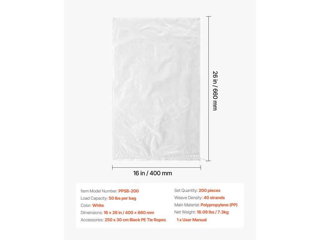Pieskové vrecia 200 ks 40×66 cm 22,6 kg tkaný polypropylén s viazaním