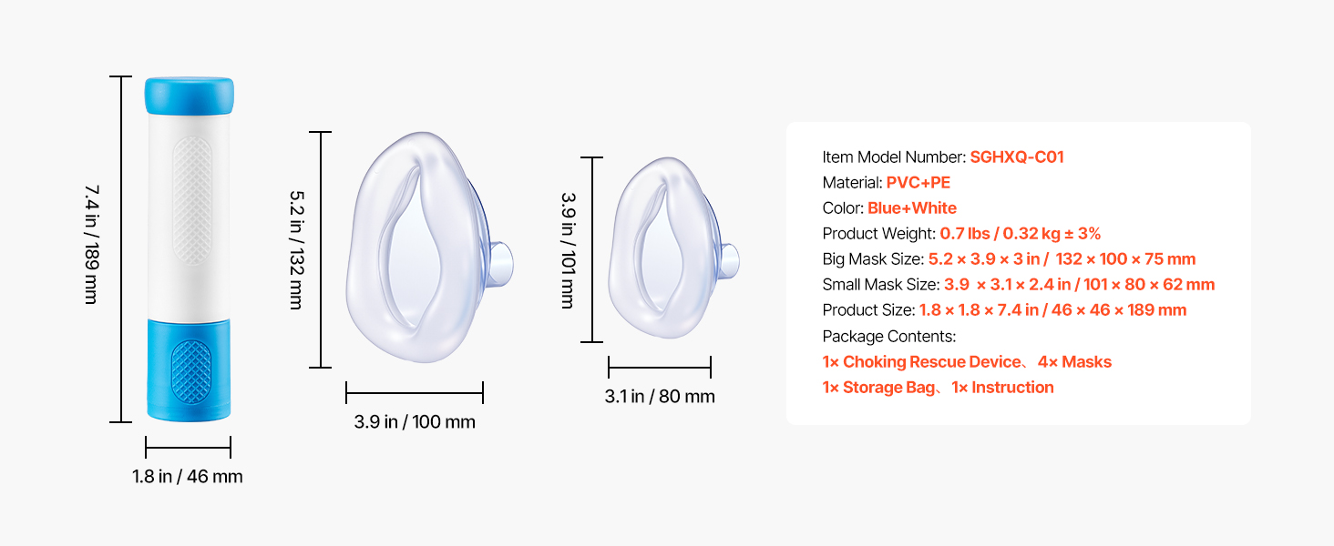 Tento záchranný prístroj pri dusení má jednoduchú obsluhu a výkonné odsávanie na odstránenie prekážok v dýchacích cestách. Vyrobené z prvotriedneho materiálu PVC+PE sa môže pochváliť ľahkým, prenosným dizajnom - ideálnym pre domácnosti, cestovanie alebo núdzové situácie.
