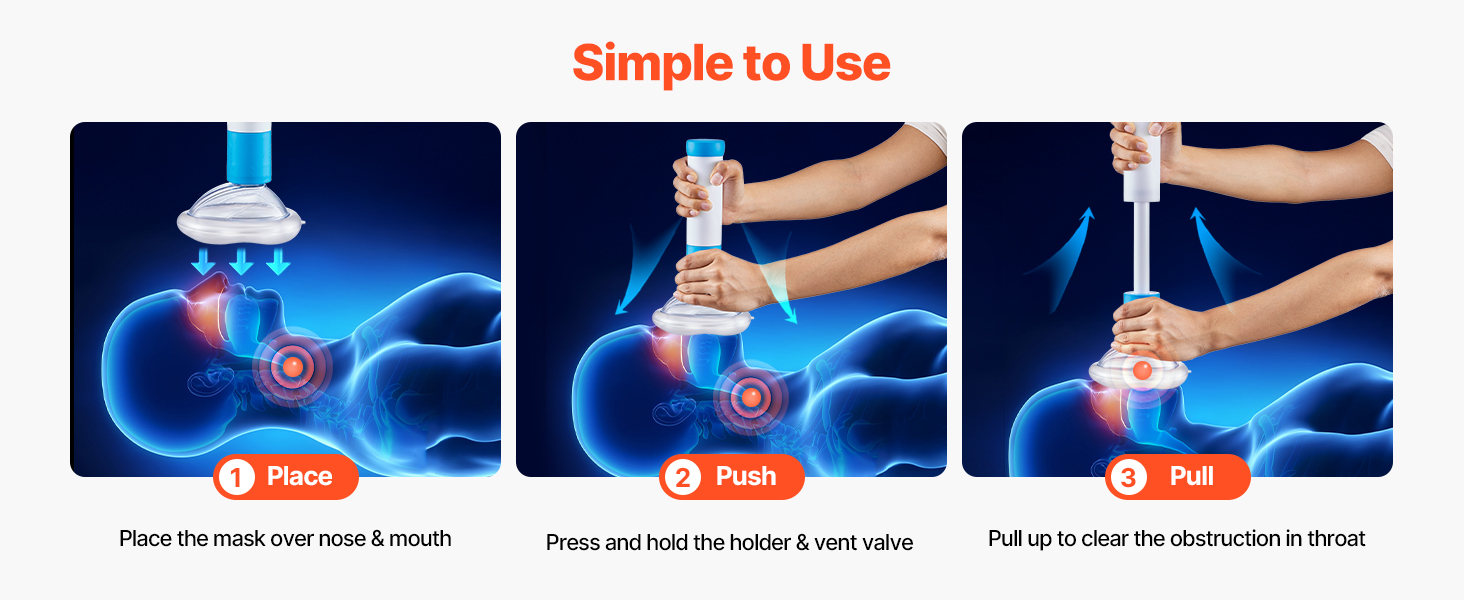 Zariadenie proti zaduseniu poskytuje rýchlu, neinvazívnu úľavu od zablokovania dýchacích ciest prostredníctvom jednoduchého trojkrokového procesu - umiestnite, zatlačte, potiahnite, čo je ideálne na núdzové použitie.