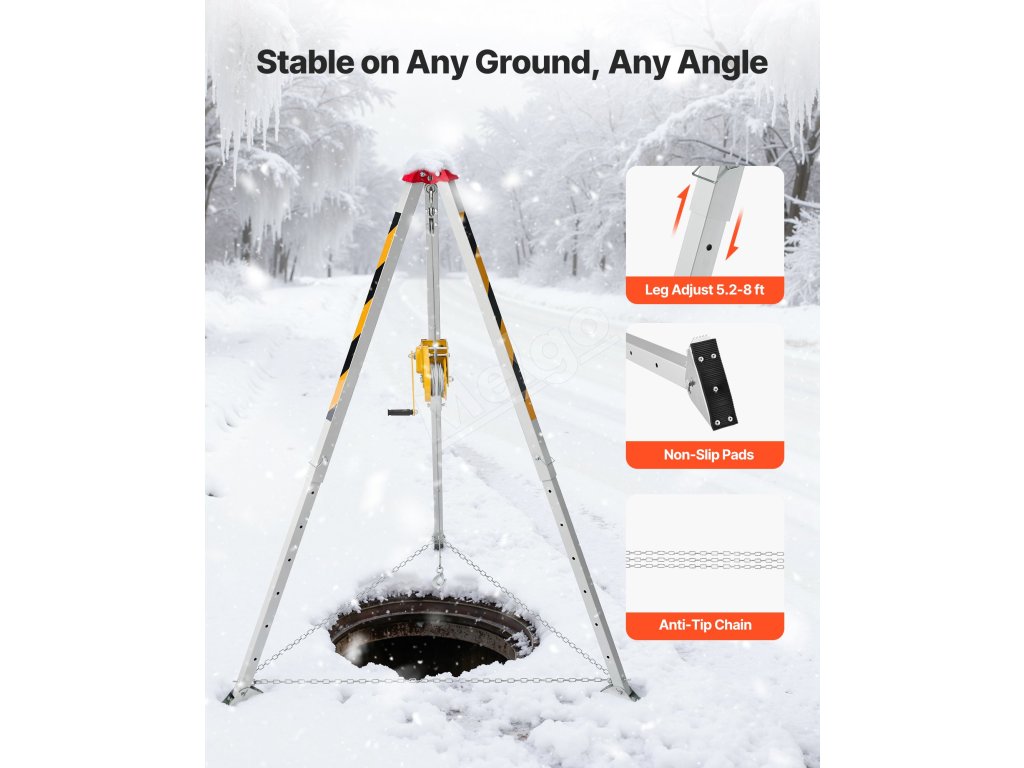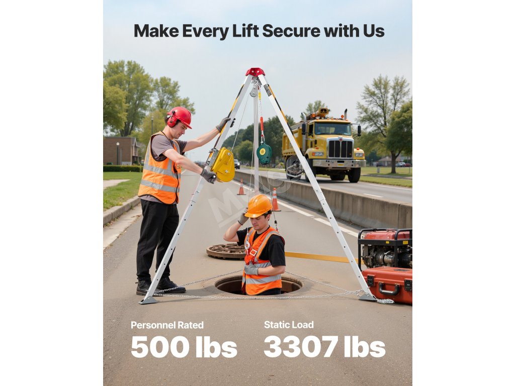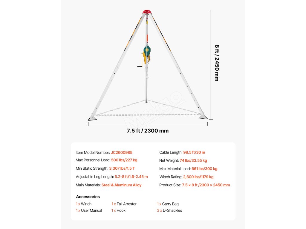 Naša záchranná trojnožka do uzavretých priestorov je v súlade s normami CE, ANSI a AS/NZS. Podopiera až 500 lb pre personál a poskytuje 3 307 lb statickú nosnosť, čím poskytuje vášmu tímu spoľahlivý výkon pri kritických zdvihoch.