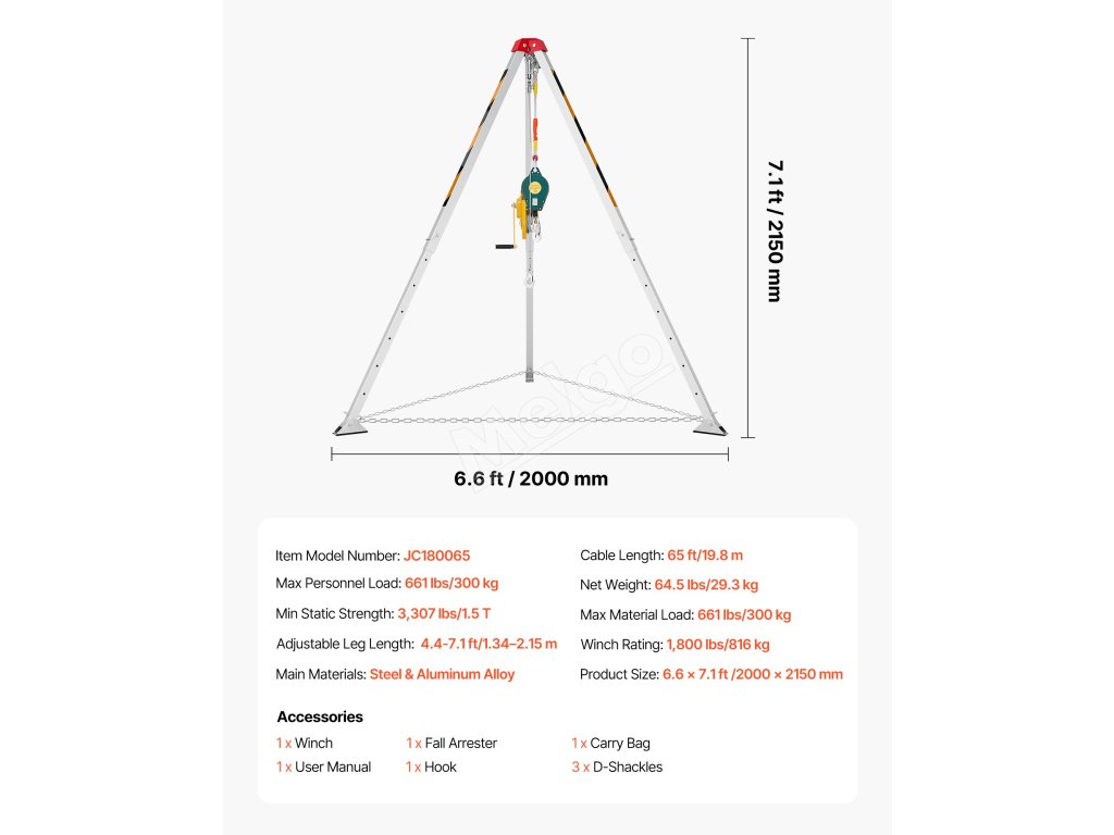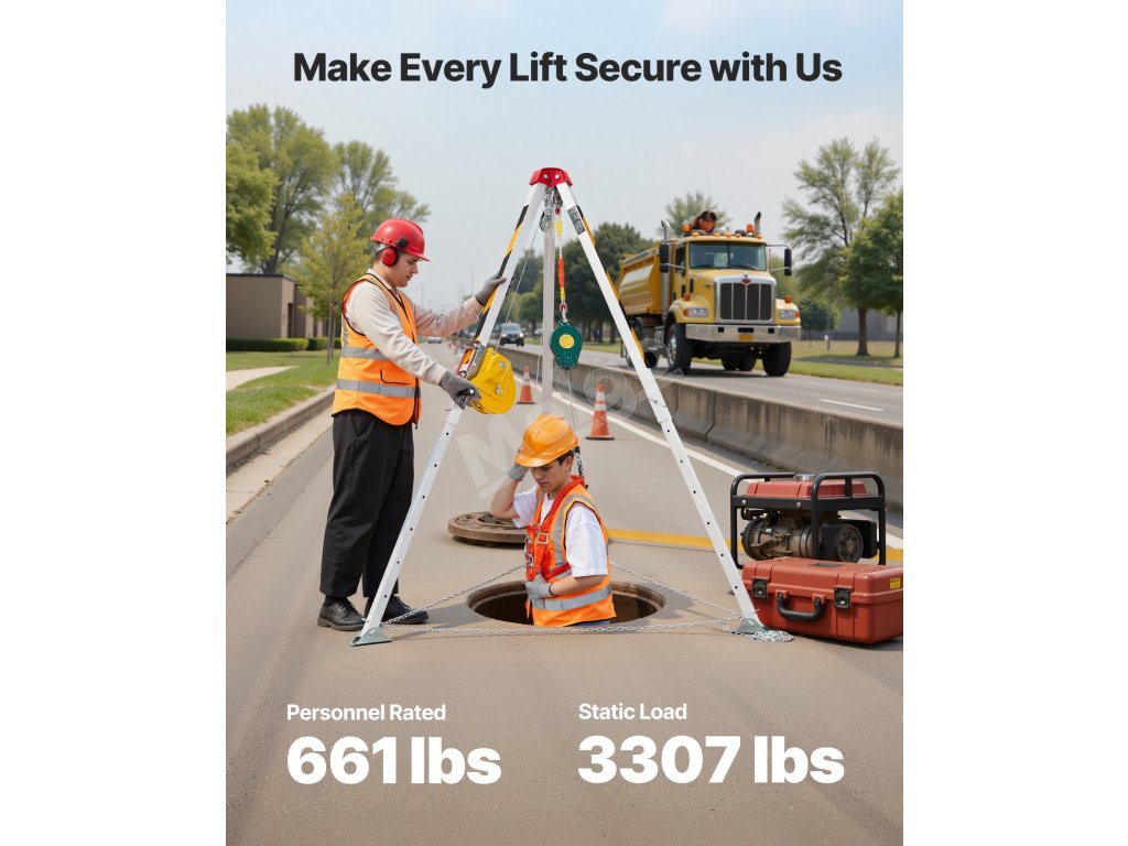 Naša záchranná trojnožka do uzavretých priestorov je v súlade s normami CE, ANSI a AS/NZS. Udrží až 661 lb pre personál a poskytuje 3 307 lb statickú nosnosť, čím poskytuje vášmu tímu spoľahlivý výkon pri kritických zdvihoch.
