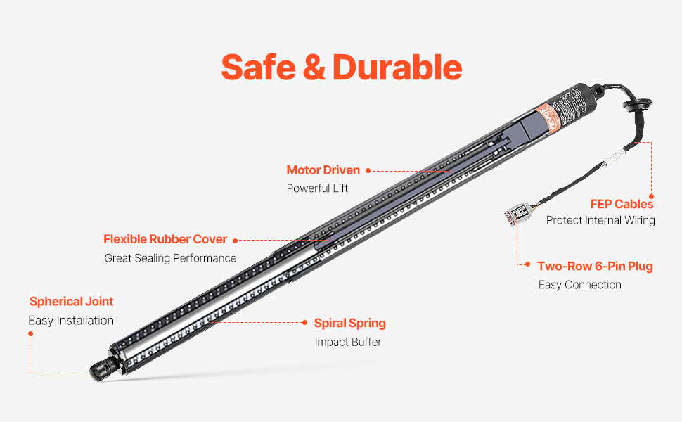Vďaka precízne spolupracujúcim súčiastkam, ľahko montovateľnému guľovému kĺbu, vysokokvalitnému motoru a jednoduchým konektorom na zapojenie je elektrická vzpera pevná a odolná.