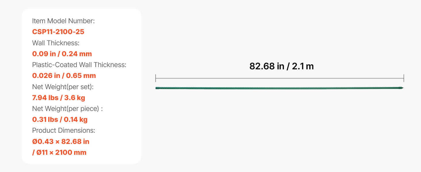 | Rozmery výrobku | ø0,43 x 82,68/Ø11 x 2100 mm |