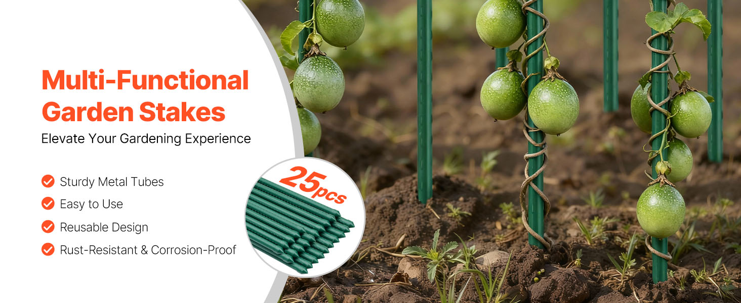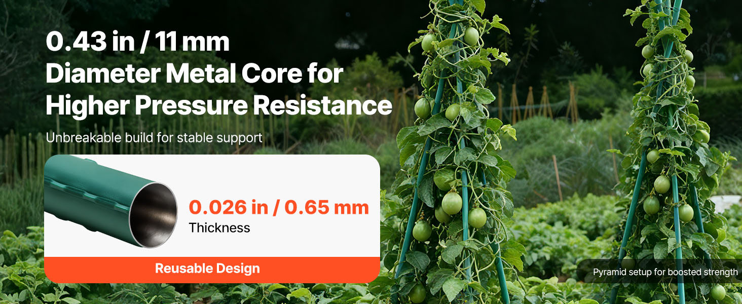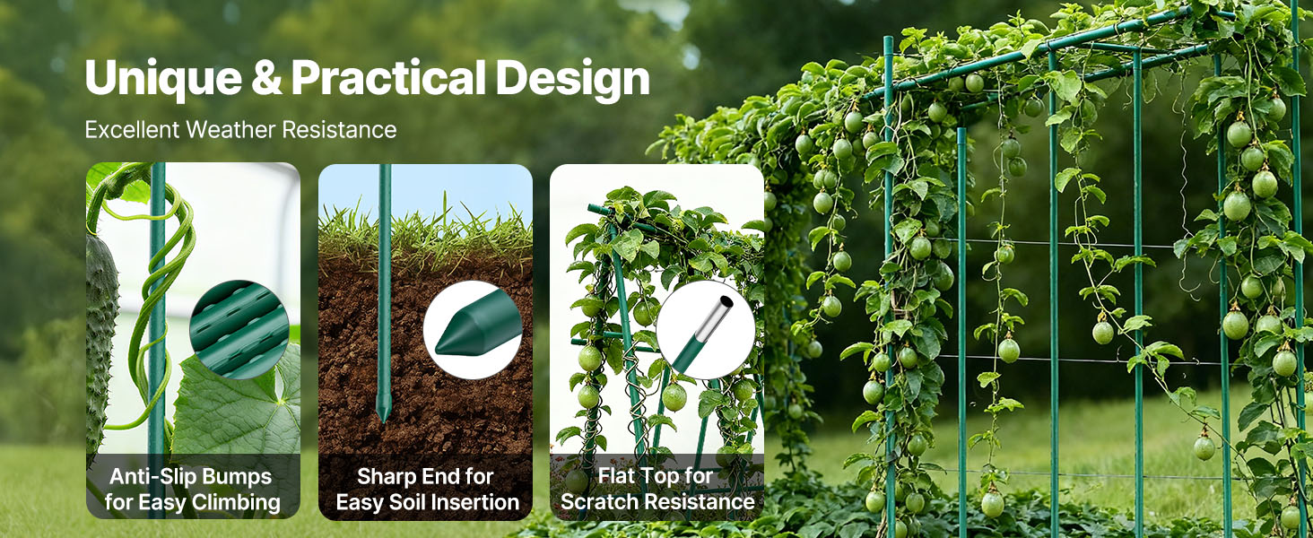 Tieto záhradné koly bezpečne podopierajú stonky rastlín, sú vhodné na stabilizáciu rastlín a vedenie popínavých rastlín. Účinne zabraňujú prevráteniu v dôsledku vetra, dažďa alebo hmotnosti, minimalizujú lámanie konárov a zabezpečujú intenzívny rast rastlín.