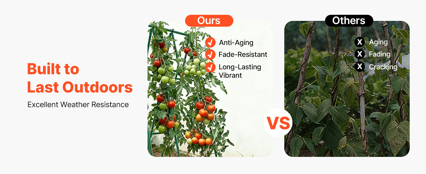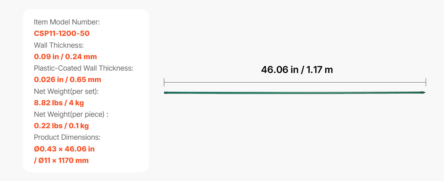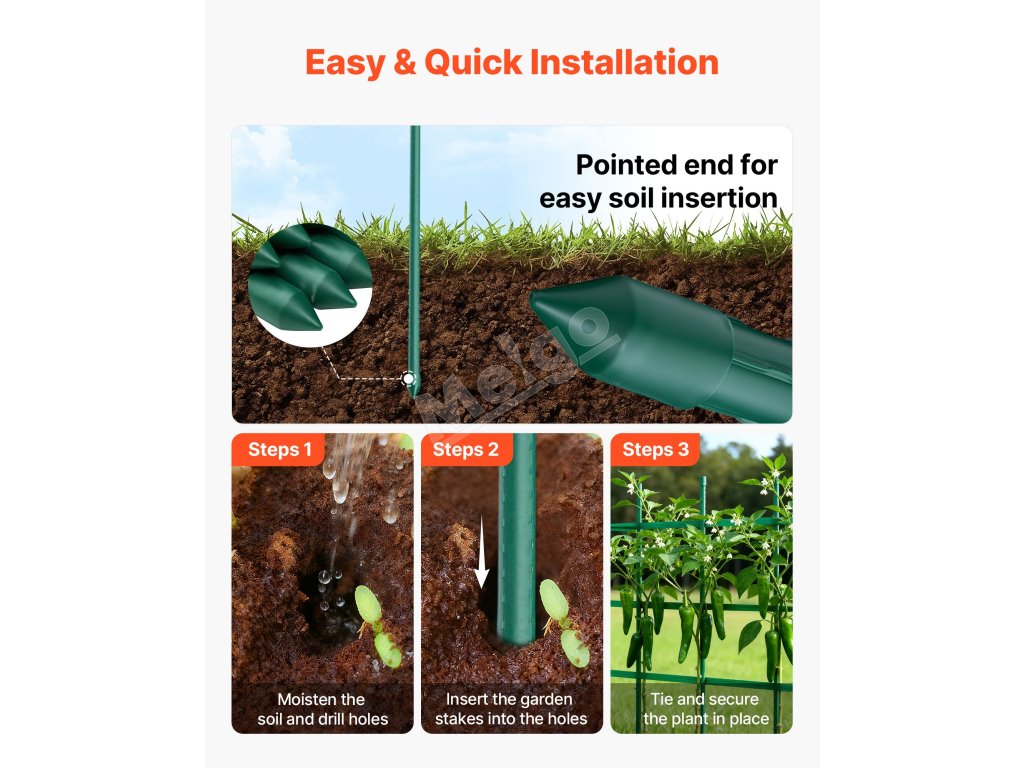 Záhradné kolíky majú povrch potiahnutý plastom na silnú ochranu, odolávajú vlhku, slnečnému žiareniu a hrdzi, čím zabraňujú vyblednutiu a poškodeniu. Vydrží dlhodobé vystavenie slnku a dažďu, takže je ideálny na dlhodobé používanie v záhradách, na dvoroch alebo v iných vonkajších záhradných prostrediach.
