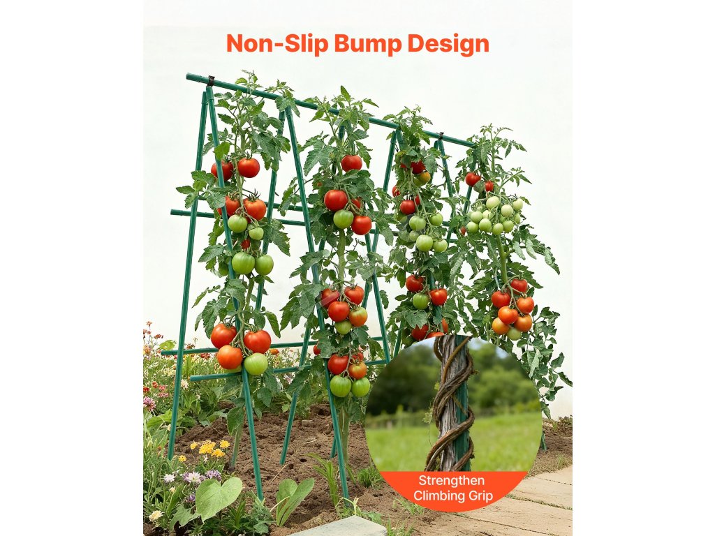 Tieto koly na paradajky, vyrobené zo zosilnených kovových rúrok na zvýšenie odolnosti proti stlačeniu a pevnosti, zostávajú v pôde stabilné bez ohýbania alebo deformácie. Možno ich použiť viackrát, účinne odolávajú ťahu rastlín a pohybu vetra, čím poskytujú dlhodobú spoľahlivosť.