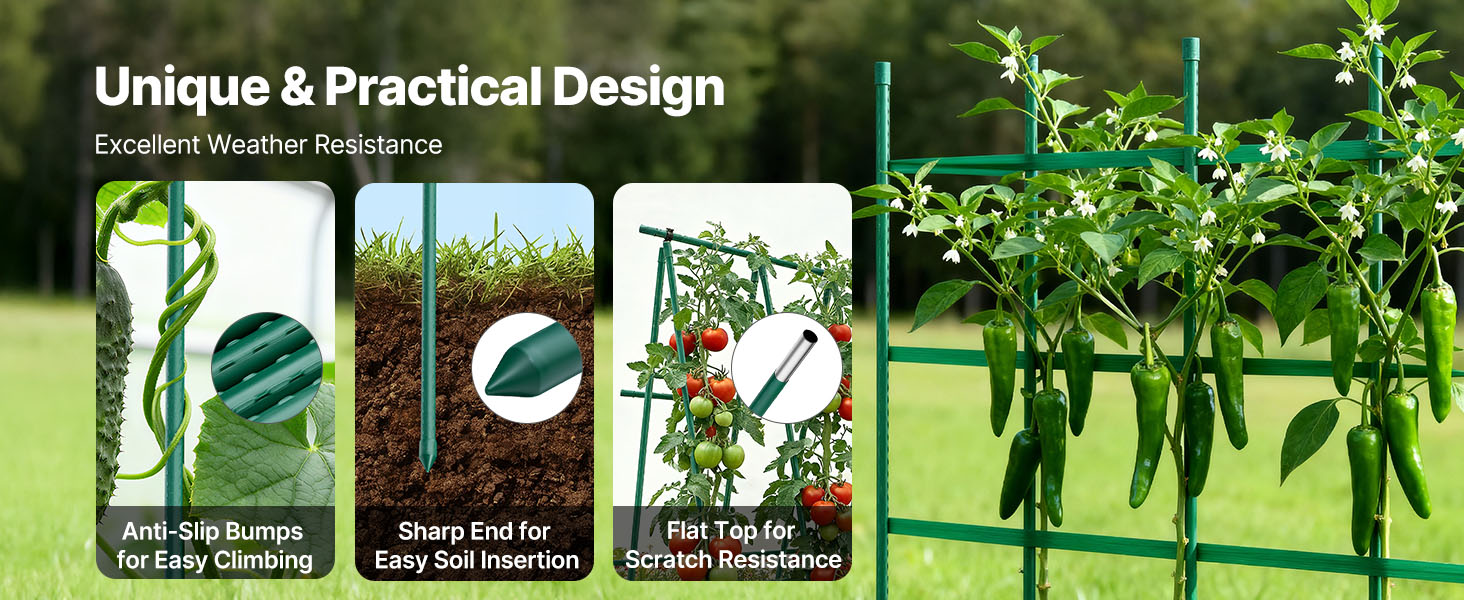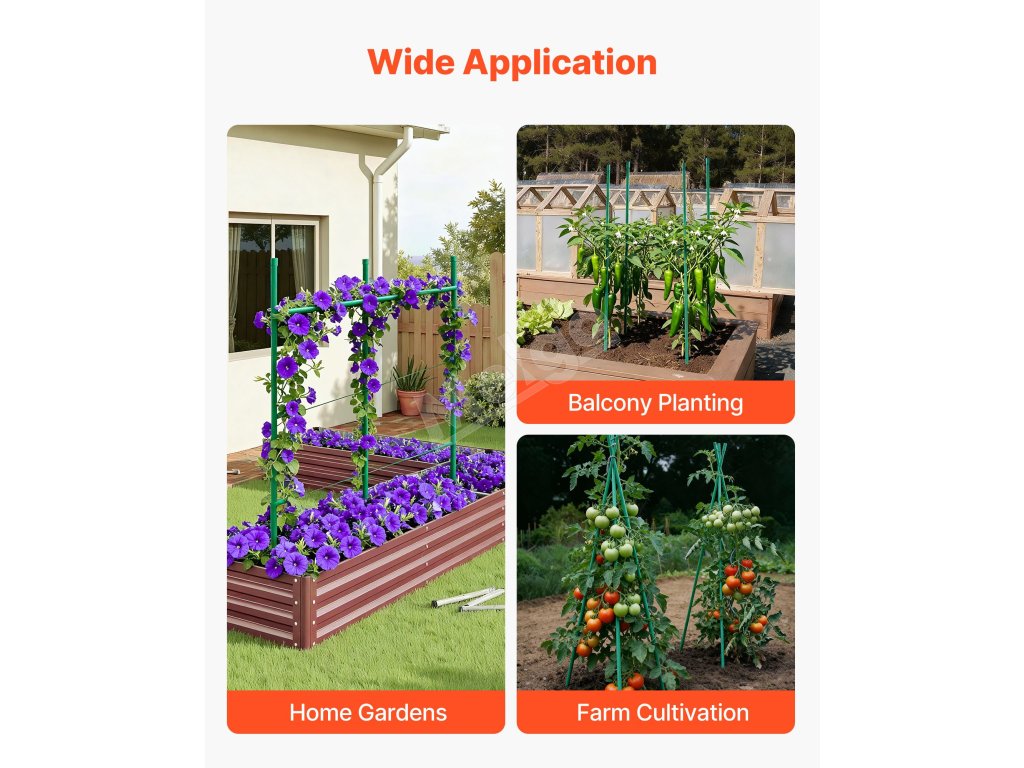 Tieto záhradné koly bezpečne podopierajú stonky rastlín, sú vhodné na stabilizáciu rastlín a vedenie popínavých rastlín. Účinne zabraňujú prevráteniu v dôsledku vetra, dažďa alebo hmotnosti, minimalizujú lámanie konárov a zabezpečujú intenzívny rast rastlín.