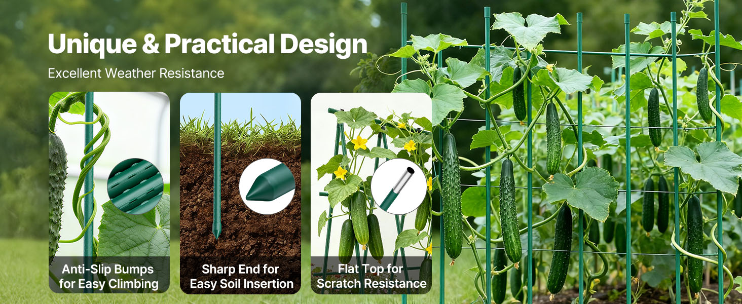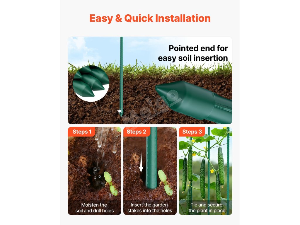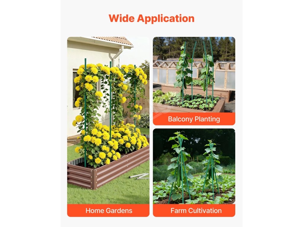 Tieto záhradné koly bezpečne podopierajú stonky rastlín, sú vhodné na stabilizáciu rastlín a vedenie popínavých rastlín. Účinne zabraňujú prevráteniu v dôsledku vetra, dažďa alebo hmotnosti, minimalizujú lámanie konárov a zabezpečujú intenzívny rast rastlín.