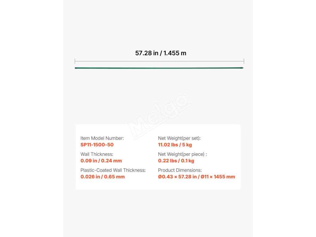 | Rozmery výrobku | ø0,43 x 57,28/Ø11 x 1455 mm |