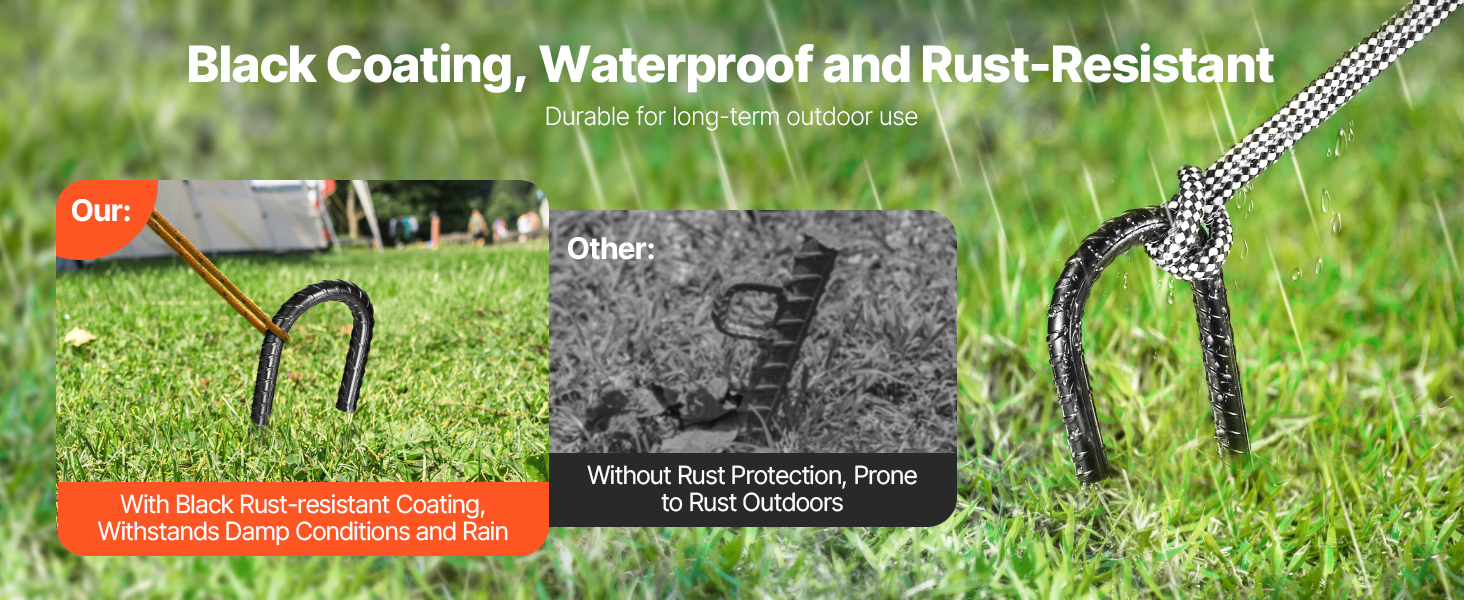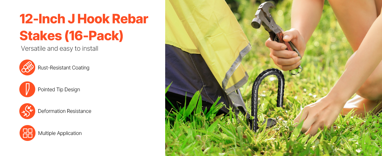 Naše kolíky s priemerom 0,4 palca poskytujú výnimočnú odolnosť voči ťahu a stabilitu. Sú vyrobené z pozinkovanej ocele HRB400E a potiahnuté čiernou práškovou farbou pre vynikajúcu odolnosť proti korózii. Sú ideálne do silného vetra a náročného terénu a možno ich použiť v rôznych vonkajších aplikáciách.