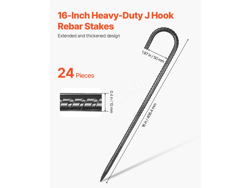 Zemné oceľové kolíky s j hákom 406,4 mm / 16-inch 24 ks zinkované