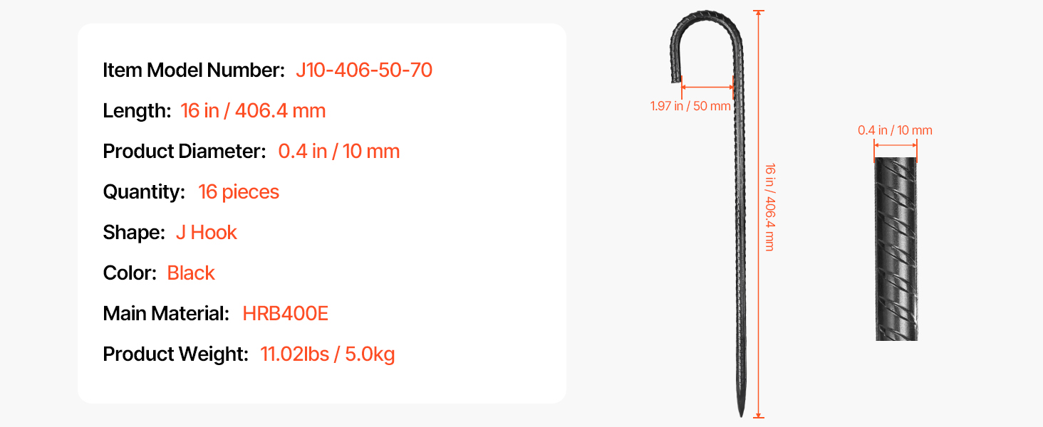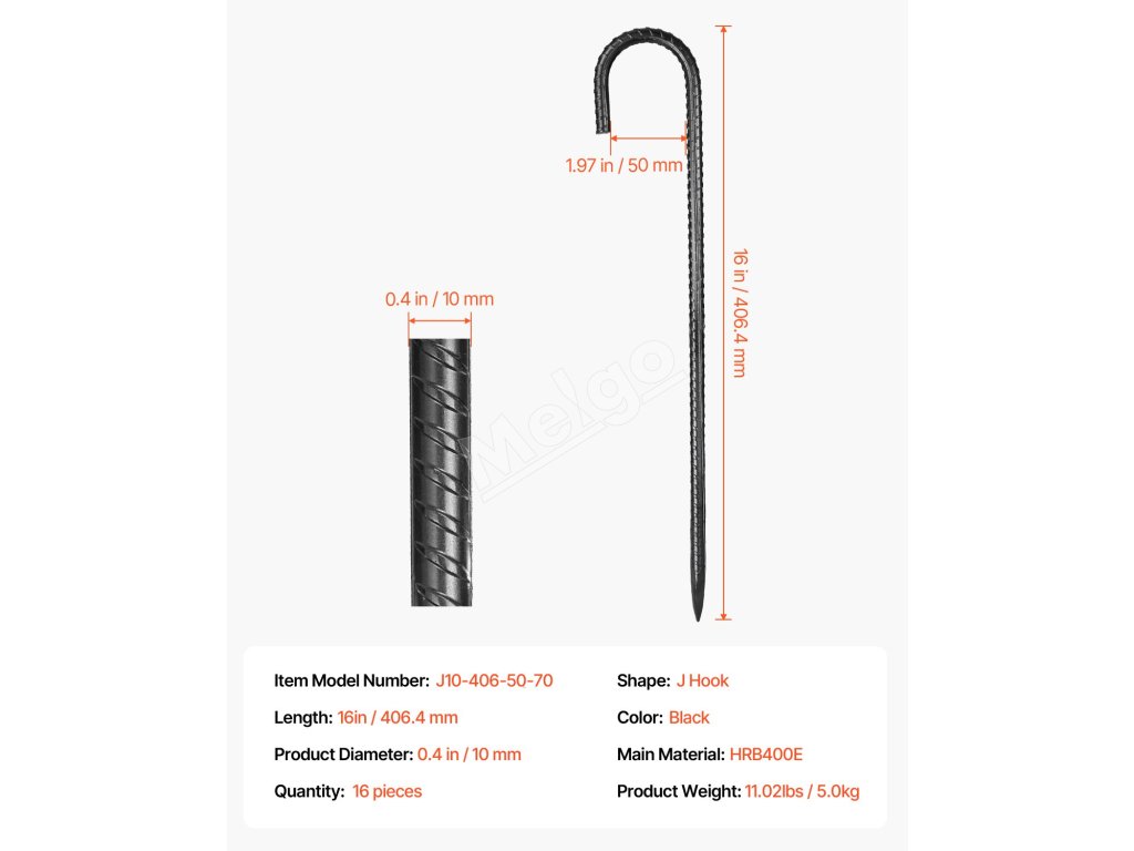 Kolíky do zeme 406,4 mm / 16-inch, priemer 0,4 in, j-hák, 16 ks
