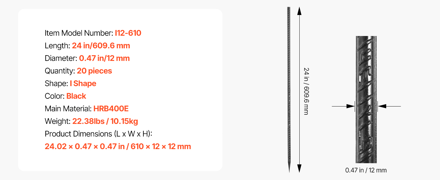 | Rozmery výrobku (D x Š x V) | 24.02 x 0,47 x 0,47 in/610 x 12 x 12 mm |