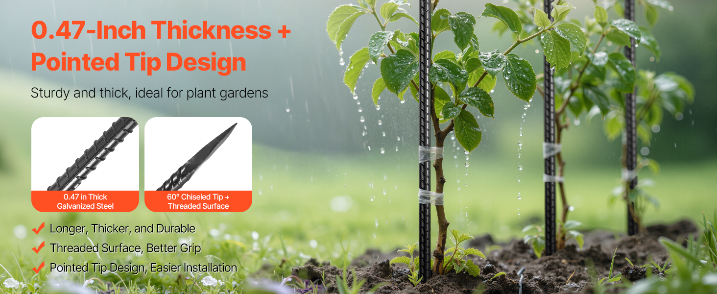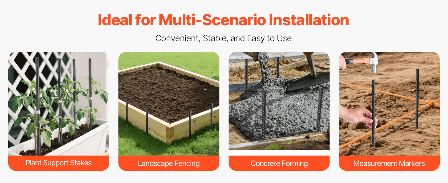 Naše tyčové kolíky sú ideálne na podperné kolíky pre rastliny, krajinné ploty, betónové tvarovanie, meracie značky, betónové bloky, kempingové stany a ďalšie.