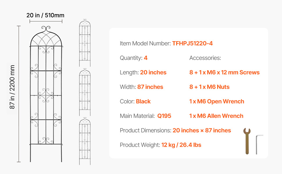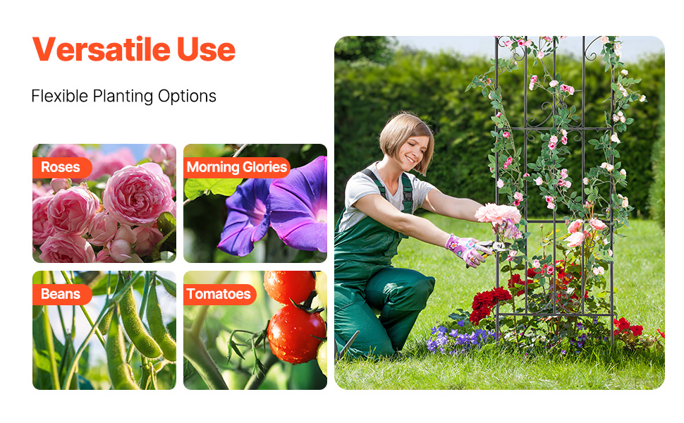Táto elegantná záhradná mriežka, navrhnutá s ohľadom na trvanlivosť a stabilitu, odoláva poveternostným vplyvom a zároveň ponúka pevnú oporu pre vaše rastliny. Je ideálna pre kvety, zeleninu a ovocie, spĺňa rozmanité potreby výsadby a umelecky zvýrazní vašu záhradu.
