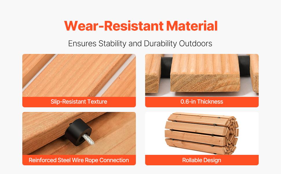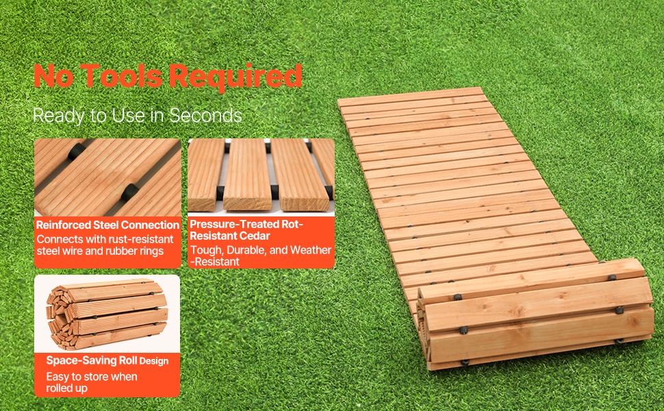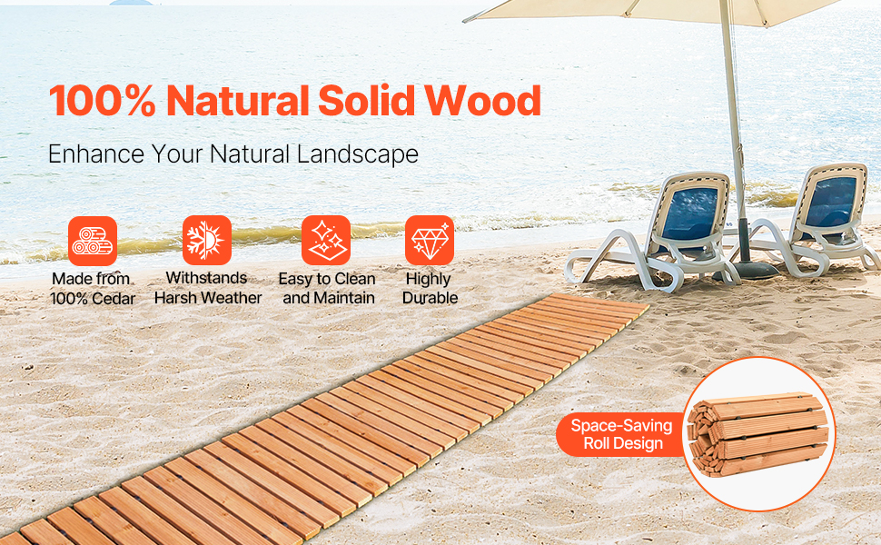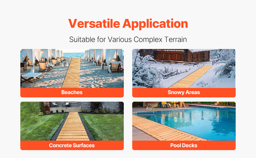 Či už na pláži, v snehu alebo pozdĺž štrkovej cesty, tento drevený záhradný chodník sa bez námahy prispôsobí a poskytne stabilný a atraktívny povrch na chôdzu.