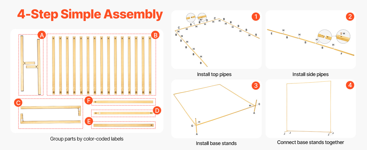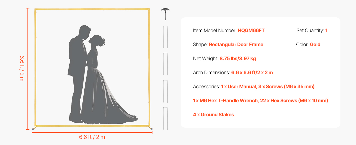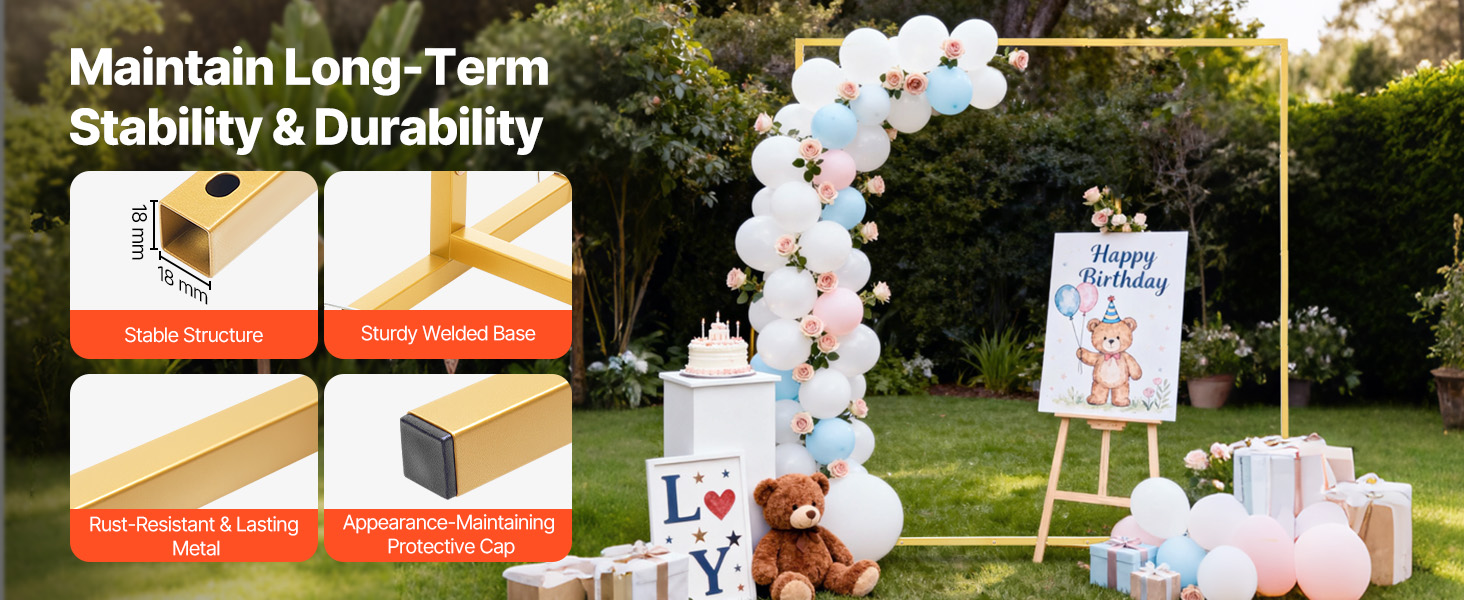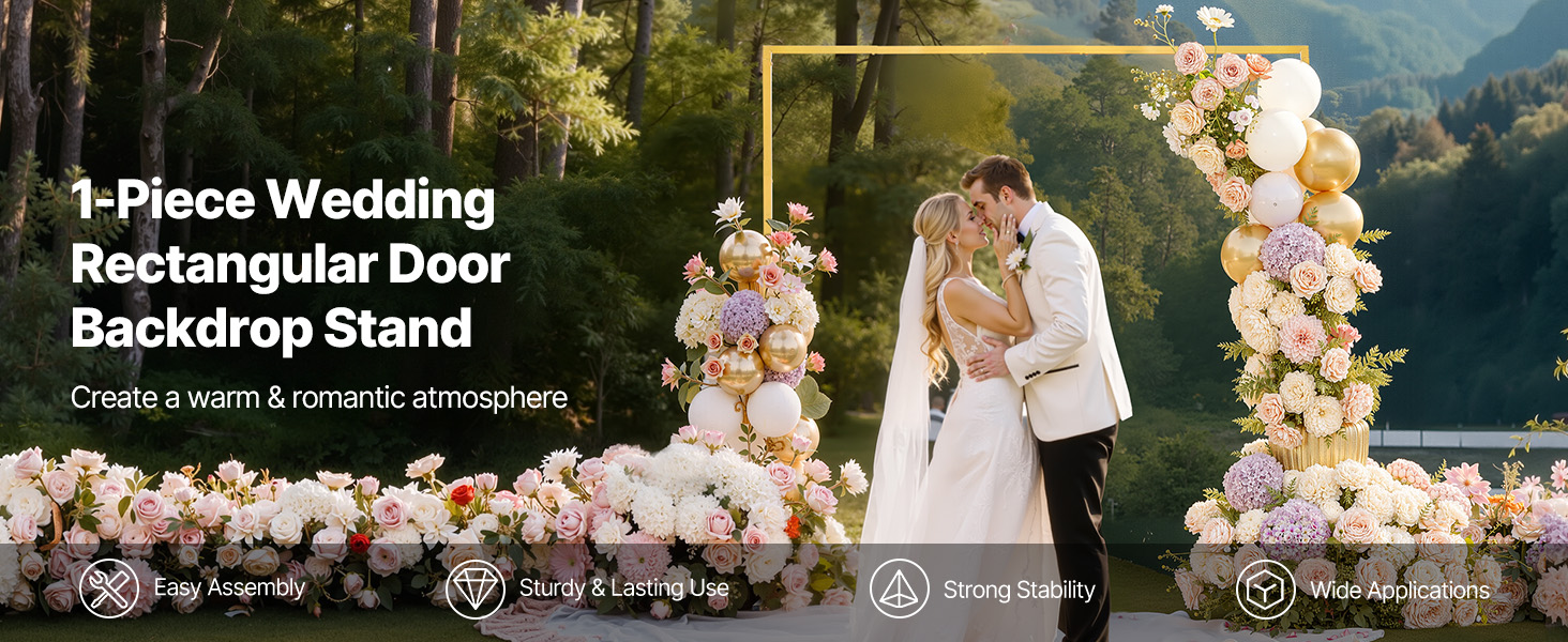 Tento 1-setový obdĺžnikový oblúkový stojan na pozadie sa ľahko zostavuje. Vďaka kovovému rámu zaručuje stabilitu a dlhodobé používanie. Je ideálny na vnútorné aj vonkajšie príležitosti a pomáha bez námahy vytvoriť hrejivú a romantickú atmosféru.