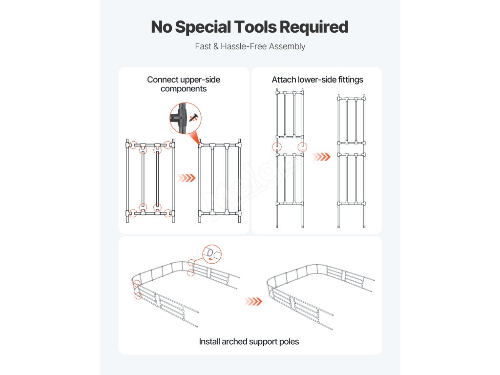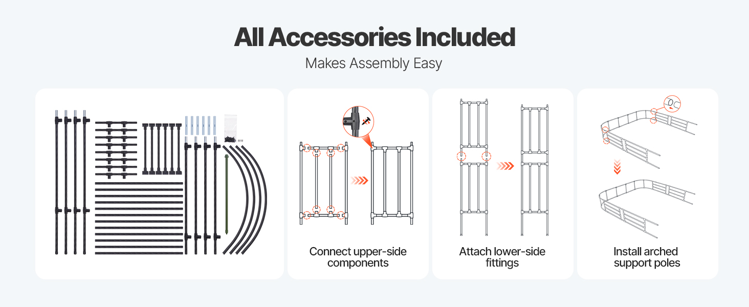 Naša mrežová brána sa dodáva so všetkými potrebnými dielmi a montážnymi pokynmi pre rýchle zostavenie. Nie sú potrebné žiadne záhradnícke skúsenosti. Na montáž nie sú potrebné žiadne ďalšie nástroje, čo šetrí čas a námahu pri vytváraní vašej vlastnej záhradnej krajiny.